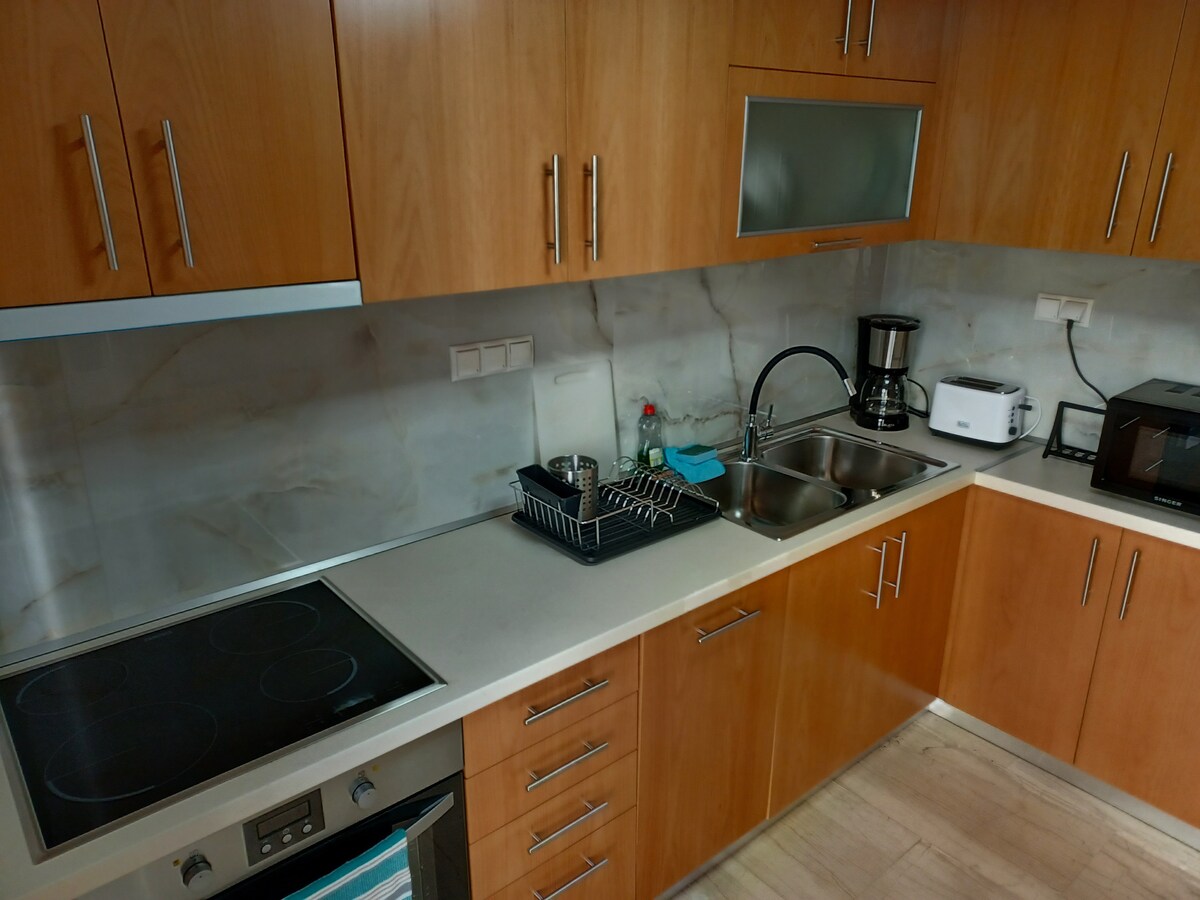 Ifulethi lihlotshiswe yinkampani yobuchwepheshe ngaphambi kokufika nangemva kokuhamba kwesivakashi ngasinye. UKUZINGENELA KUPHELA Ibanga lokuhamba ngezinyawo ukuya eDolobheni Centre (800m) nokufinyelela emabhishi adumile ase-Kavala amaminithi angu-10 ngemoto. I-100m ukusuka esiteshini seBhasi ne-Supermarket. Ukubukeka kwedolobha okubabazekayo novulandi omkhulu ongawujabulela. Ifulethi linezinto zonke. Hlola elinye ifulethi esakhiweni esifanayo uma kungekho ukutholakala noma ukuhamba nabangane https://www.airbnb.com/h/kavalaseaview1