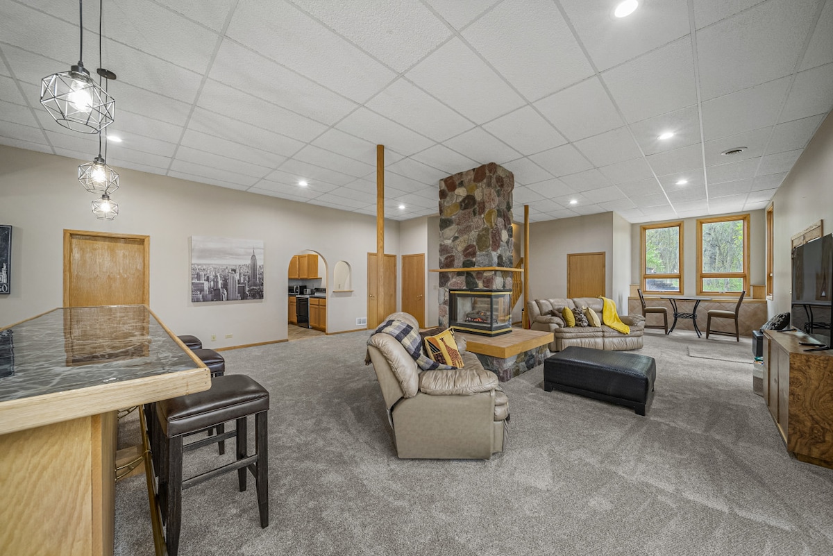 2,937 Sq Ft | Ubusuku Bemidlalo Yeqembu | Kulungele i-BBQ | Eduze ne-Aurora & Naperville Nikeza iqembu lakho indawo yokuhlala e-Chicagoland engasoze yalibaleka nale ndawo yokuvakasha eqashisayo yase-Plainfield njengendawo yakho! Kungakhathaliseki ukuthi uvakashela abantu obathandayo emadolobheni aseduze noma uhlola idolobha eliphithizelayo lase-Naperville, uzokuthanda ukubuyela kuleli khaya lesibili ukuze ube nesikhathi esimnandi nomndeni nabangane. Jabulela ihora lokuzijabulisa kuvulande, upheke ukudla okumnandi ekhishini eliphelele, futhi ubukele amafilimu endaweni yokuhlala evulekile — kukuwe!