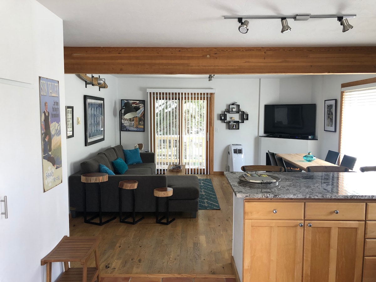 Woza ube nokuzijabulisa kuleli dolobha lasezintabeni, ngemisebenzi yonyaka wonke. Hlala efulethini lethu lesimanje elizimele kodwa elithokomele eliphansi elinegumbi lokulala elilodwa, igumbi lokugezela elilodwa nesofa yokudonsa egumbini lokuphumula. Itholakala endaweni yase-Elkhorn - i-Sun Valley, imizuzu ukusuka edolobheni kanye nezintaba ze-Dollar ne-Baldy ski.