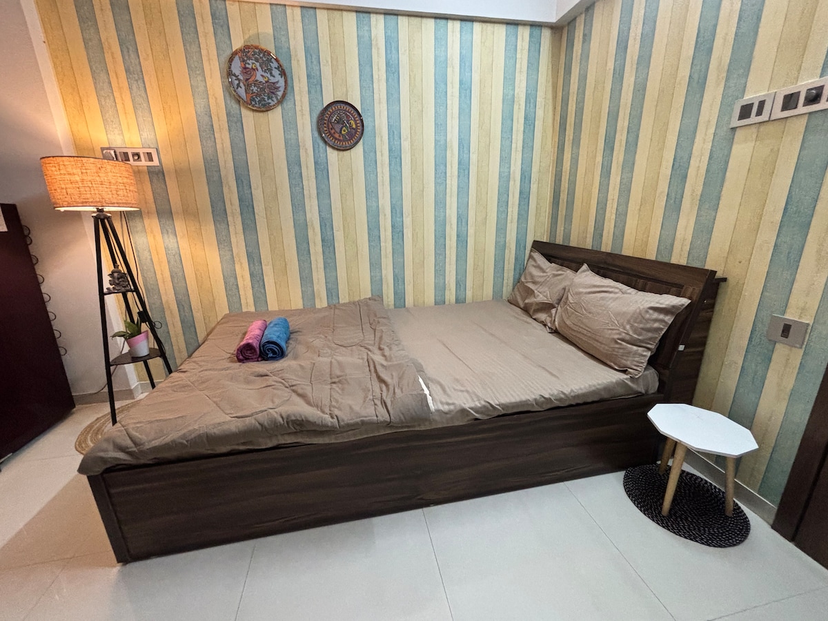Istudiyo esithokomele esihle esiseGera's World of Joy, Kharadi, imizuzu embalwa ukusuka eBarclays, EON IT Park & WTC. Jabulela umbhede omkhulu othokomele, i-smart TV, i-Wi-Fi, i-AC, nekhishi elincane eline-balcony. Ilungele ukuhlala kwebhizinisi noma kokungcebeleka, okunokuvikeleka okungu-24x7 nokufinyelela okusheshayo ezindaweni zokudlela, ezitolo ezinkulu, nase-Pune Airport. Inhlanganisela ekahle kakhulu yokunethezeka, isitayela, nokunethezeka esikhungweni se-IT se-Pune.