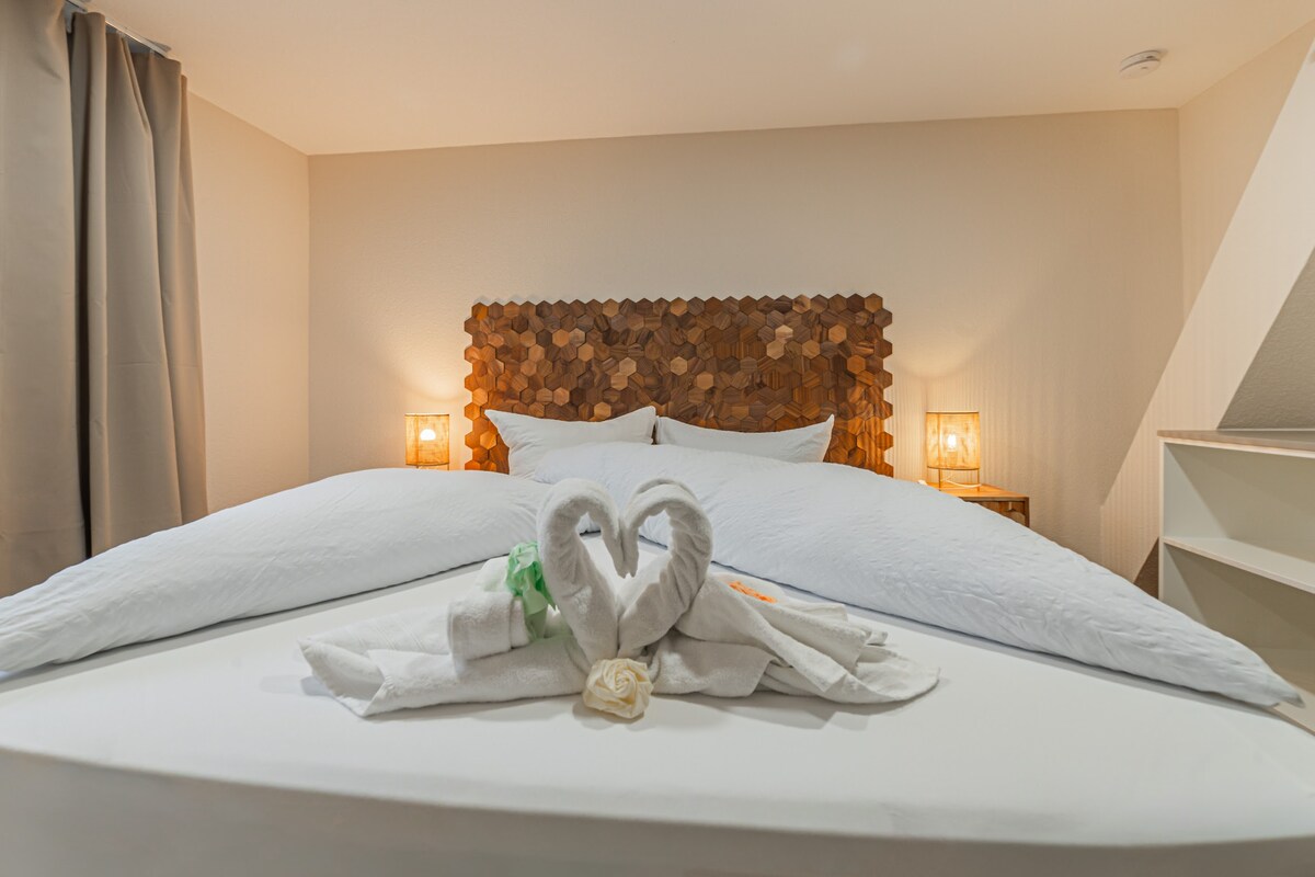 Zizwele isitayela esingenakuqhathaniswa ku-60 sqm e-Emerald Suite Neumünster, emizuzwini embalwa ukusuka esikhungweni se-designer outlet, esiteshini sesitimela nase-Holstenhallen. Igumbi lokulala elinombhede ongu-spring box liqinisekisa ubusuku obunokuthula, indlu yokugezela eneshawa inobuhle obukhangayo obunemihlobiso yegolide. Ikhishi elinakho konke ne-smart TV kuqinisekisa ukuhlala okunethezekile. Indawo yokupaka ephrayivethi iyatholakala. Indawo (ngemizuzu) Isikhungo Sokuphuma Somklami: 5 Isiteshi sesitimela: 3 Holstenhallen: 7 I-Hamburg & Kiel: 35