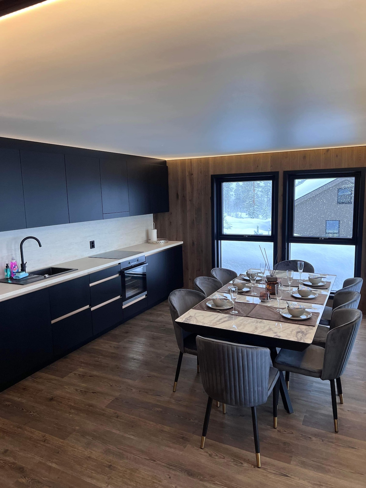 Indlu enkulu eyakhiwe ngamapulangwe esanda kwakhiwa enendawo ekahle phezulu endaweni yase-alpine, engamamitha angu-100 ukuya endaweni yokushushuluza eqhweni. Ukushushuluza eqhweni emazweni eduze. Ehlobo, unelanga lasekuseni endaweni yesidlo sasekuseni, ngaphambi kokuba ilanga lantambama lizungeze ithala elikhulu elihlangene ku-slate namapulangwe, elinezindawo ezinhle ze-Jotunheimen! Ukuqwala izintaba okuhle unyaka wonke. Amakamelo amabili namagumbi okugezela amabili esitezi sokuqala. Ama-herms anamagumbi okulala amabili nesixazululo esivulekile siye egumbini lokuphumula. Ikhishi elikhulu elinokufinyelela okuqondile egunjini lokushushuluza eqhweni/esitolo se-lube. Indlu eyakhiwe ngamapulangwe ineshaja yemoto kagesi.
