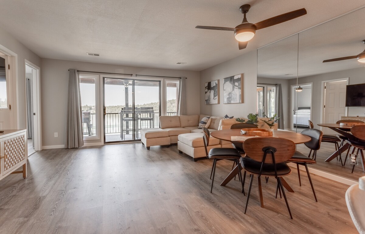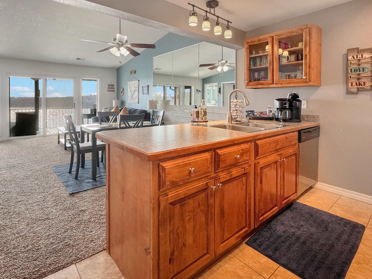 Vakasha uye kule Lakefront Penthouse Retreat e-Table Rock Lake, unikeze izindawo ezingenasithiyo ezisesitezi esiphezulu nesethingi ekahle yokuvakasha kwezithandani, ukuvakasha komndeni, noma uhambo lwamantombazane (noma abafana uma benza lokho)! Imizuzu nje ukusuka e-Silver Dollar City, e-Dogwood Canyon, nemizuzu engu-30 ukusuka e-Branson Strip. Jabulela usilingi, ikhishi eligcwele, i-sofa sleeper, umshini wokuwasha/wokomisa, kanye nedekhi ephrayivethi enezindawo ezinhle ezingasechibini. Thola u-10% okhishiwe kumathikithi lapho ubhukha le condo. Phumula, hlola, futhi wenze izinkumbulo ezihlala njalo!