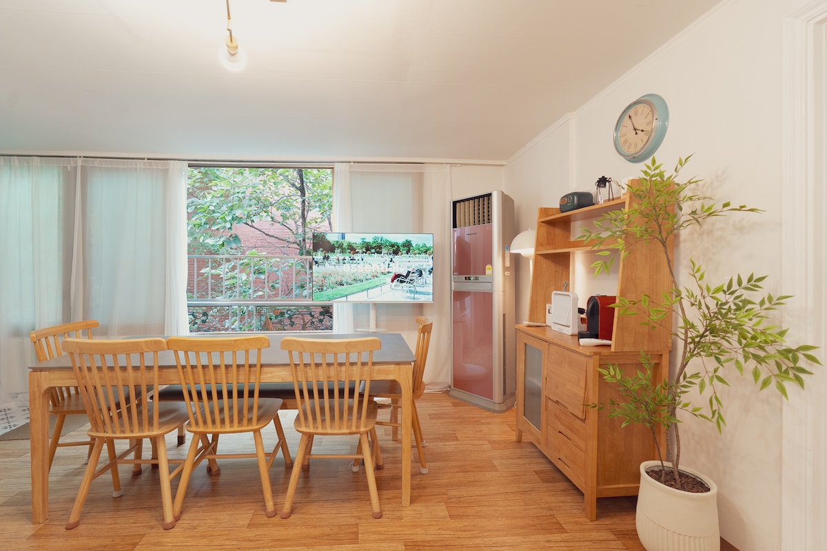 Itholakala maphakathi ne-Dongdaemun ne-Jongno, ngakho-ke inezidingo zabakhubazekile ezinhle kakhulu zesitimela esingaphansi komhlaba, futhi kunamathuba ahlukahlukene okokuzithokozisa anjengomlando, isiko, ukuthenga, nokudla. Hlala nomndeni wakho ngokuthula nangokunethezeka enkabeni yedolobha. 2m x 1m - Itafula labantu abangu-8 - Indawo engcono kakhulu yokusebenzela I-Line 1 Hoegi Station imizuzu engu-10 uhamba ngezinyawo! Eduze ne-Kyung Hee University ne-Kyung Hee Medical Center. Amakamelo amabili (ikamelo elilodwa letafula, igumbi lokulala elilodwa, igumbi lokugezela, ikhishi) igumbi letafula + igumbi lokulala + ikhishi/igumbi lokuphumula + igumbi lokugezela igumbi letafula - i-cot eyodwa noma umatilasi ikamelo lokulala - umbhede omkhulu Wonke amakamelo - i-air conditioner entsha ifakiwe! Sicela usitshele kusengaphambili uma udinga i-topper yaphansi.!!! (Ukulala okuhlukile kungenzeka) Isitimela esingaphansi komhlaba (Isiteshi se-Line 1 Hoegi) imizuzu engu-10 uhamba ngezinyawo (Isiteshi sase-Cheongnyangni) Imizuzu engu-2 uhamba ngezinyawo usuka e-Kyunghee University Imizuzu engu-2 uhamba ngezinyawo usuka e-Kyunghee Medical Center Umzuzu owodwa uhamba ngezinyawo usuka esitobhini sebhasi -Convenience store-1 min by walk Umzuzu owodwa uhamba ngezinyawo usuka esitolo sokudla Ilondolo ngomzuzu owodwa uhamba ngezinyawo -Ukupaka kuvunyelwe. Sicela uxhumane nathi ~! *