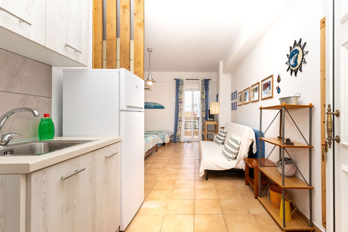 Jabulela ukuhlala kwakho e-Iliana & Sarra Apartments. Zitholakala amamitha angu-200 kuphela ukusuka maphakathi ne-Limenas nolwandle,endaweni ethulile. Izitolo ezinkulu, ama-tavern, amathilomu nezitolo kusele imizuzu embalwa. Isimanje futhi silungiswe ngokugcwele, sine-air conditioning kuwo wonke amagumbi, i-WiFi, i-Smart TV 43", isiqandisi esikhulu, umshini we-espresso, umshini wokupheka kagesi, umshini wokuwasha, i-ayini kagesi nokomisa izinwele. Ukukhetha okufanele imindeni nemibhangqwana. 👌🏻