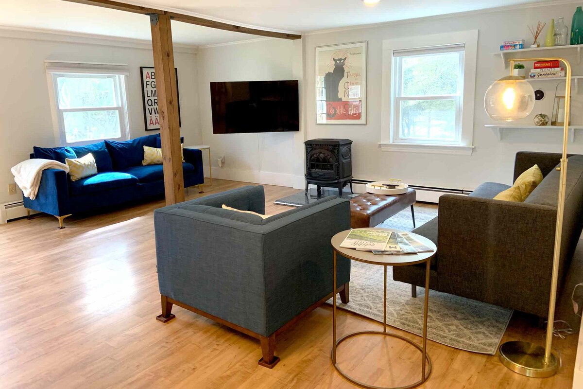 🌊 Siyakwamukela e-Seacoast! Le ndawo yokuphumula enamakamelo okulala angu-4 iphrayivethi futhi isendaweni esesimweni esihle e-Kittery Foreside kuyilapho isakugcina useduze nalapho okwenzeka khona. Leli khaya, elihlotshiswe ngesitayela esikhangayo sepulazi elisogwini lolwandle, lilungele ngokuphelele imibhangqwana engu-2–3, umndeni (noma emibili), noma iholide elide lomsebenzi 💻🏡.