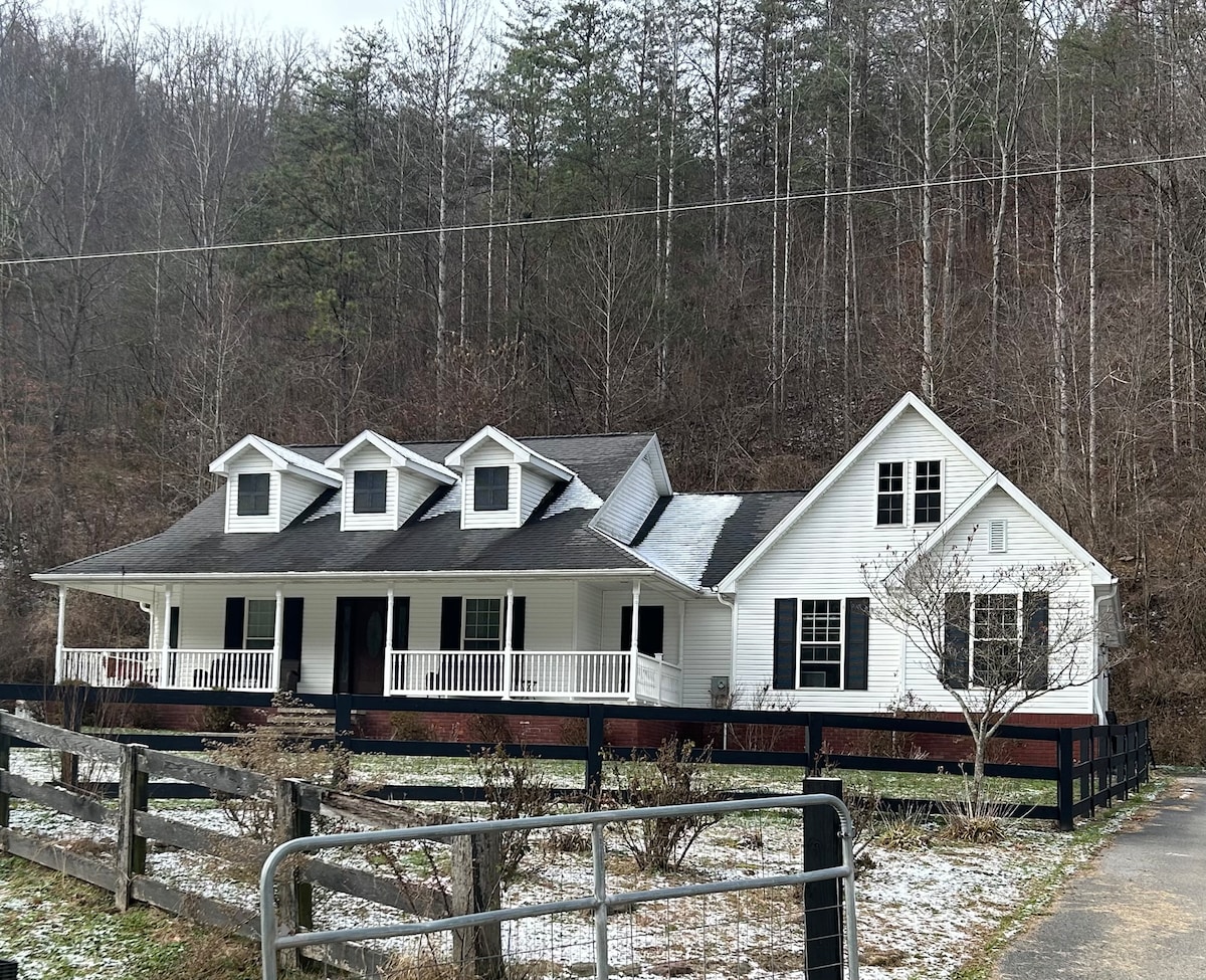 Siyakwamukela endaweni yethu yokuphumula yasepulazini, esepulazini elincane lamahhashi elisezintabeni zase-Eastern Kentucky. Leli khaya elinamagumbi angu-3, elinamagumbi angu-2 okugezela lizungezwe imvelo, izilwane ezinobungane, nezindawo ezivulekile zezintaba.