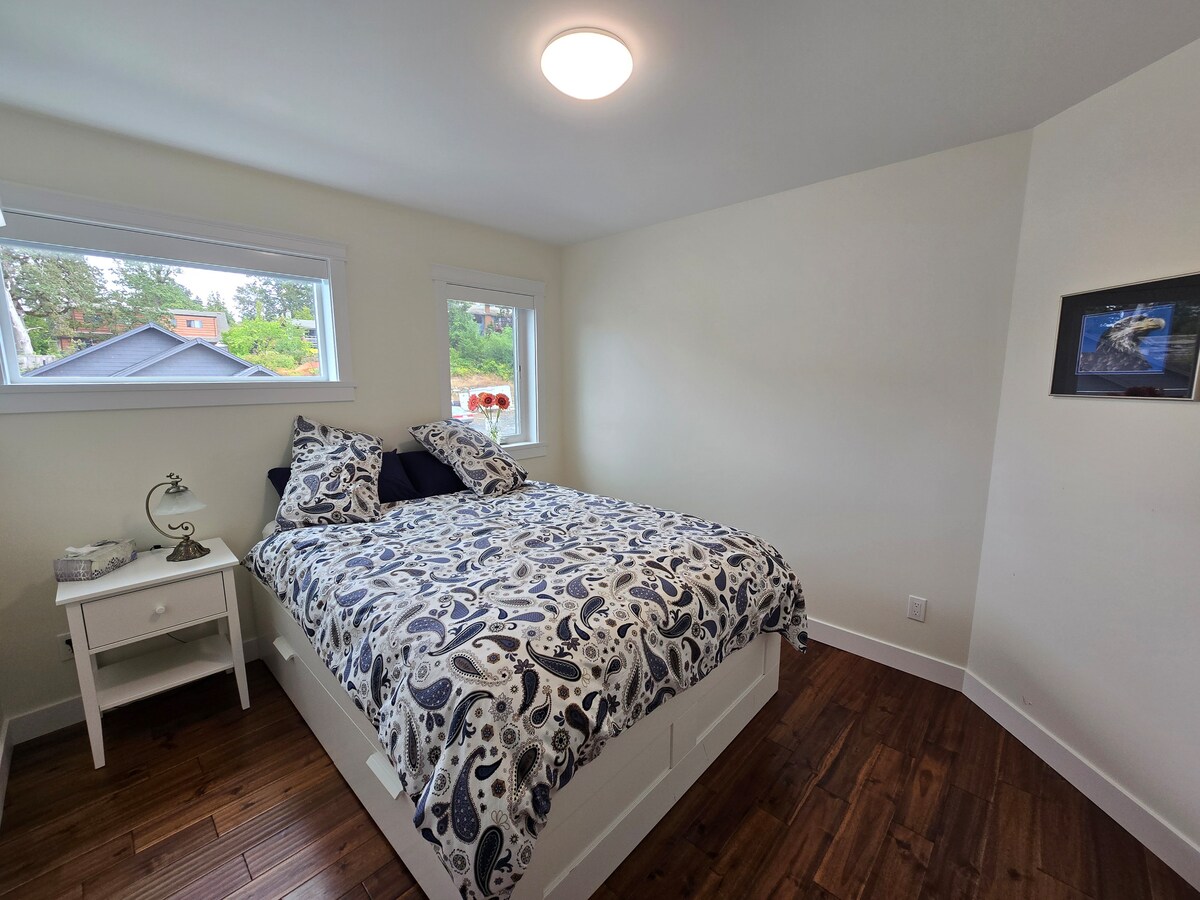 Leli gumbi lengadi elihlanzekile, elikhanyayo nelikhangayo, lisendaweni ethulile ye-cul de sac, kodwa lisekela endaweni yasepulazini yabelusi. Ikhaya lethu lamagugu liyimizuzu engu-5 kuphela ukuya edolobheni nemizuzu engu-15 ukuya esibhedlela sase-Cowichan District. I- "HH Garden Suite", isenkabeni yentaba yase-Cowichan Valley - indawo yokuhamba ngebhayisikili futhi ayikho ngaphezu kwemizuzu eyishumi ngemoto ukuya kunoma yiziphi izintaba ezintathu abagibeli bamabhayisikili esigodi abaziqhayisa ngazo! Izitezi ezifudunyeziwe ziqinisekisa izinga elengeziwe lokunethezeka ezivakashini zethu. Ilondolo yangasese egunjini lokulala
