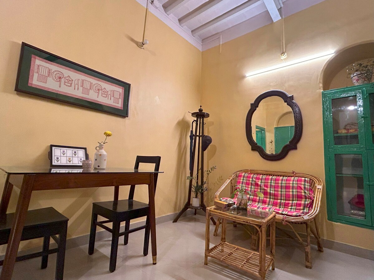 Jabulela ukuhlala okuyingqayizivele efulethini elihle esitezi esiphezulu (sesine) somsebenzi osebenza naye we-Red Bari nesitolo sekhofi. Hlala esakhiweni samagugu esibuyiselwe futhi esakhiwe kabusha esinemizwa yangempela ye-Calcutta nakho konke ukunethezeka kwamasevisi anamuhla. I-Airy, enokukhanya kwemvelo okuningi emafasiteleni nokufinyelela ithala. Imizuzu engu-2 uhamba ngezinyawo usuka e-Metro, emaphakathi kakhulu nenkaba yedolobha. Ukungena kukheshi kuyatholakala kuze kufike esitezi sesithathu. Ukufinyelela endaweni yokusebenzela, nezinye izindawo ezihlanganyelwayo.
