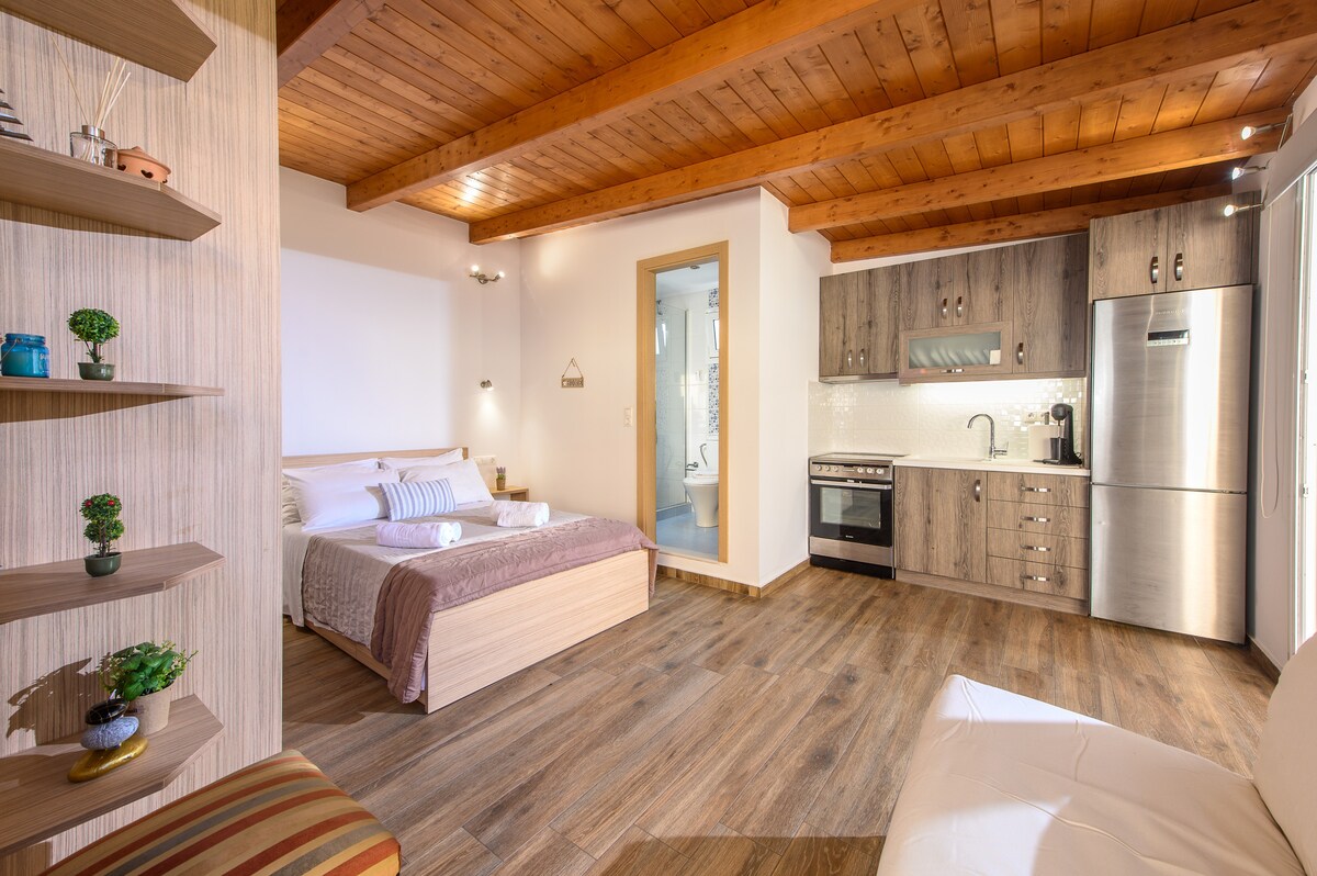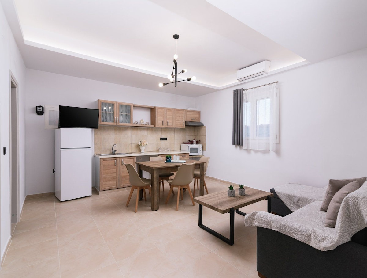 Bask by the Beach in a Chic Apartment Overlooking the Sea. Enjoy breathtaking sunsets from this modern apartment just steps away from Ammoudara beach. Start your day with a swim or relax on the balcony with a sea view. Traditional Cretan lace and artwork add a touch of folklore to the stylish interior. The house is fully equipped with everything you need, including a kitchen and modern amenities like Wi-Fi, air conditioning, and a TV. Take a short drive og 10 minutes to Heraklion city center.