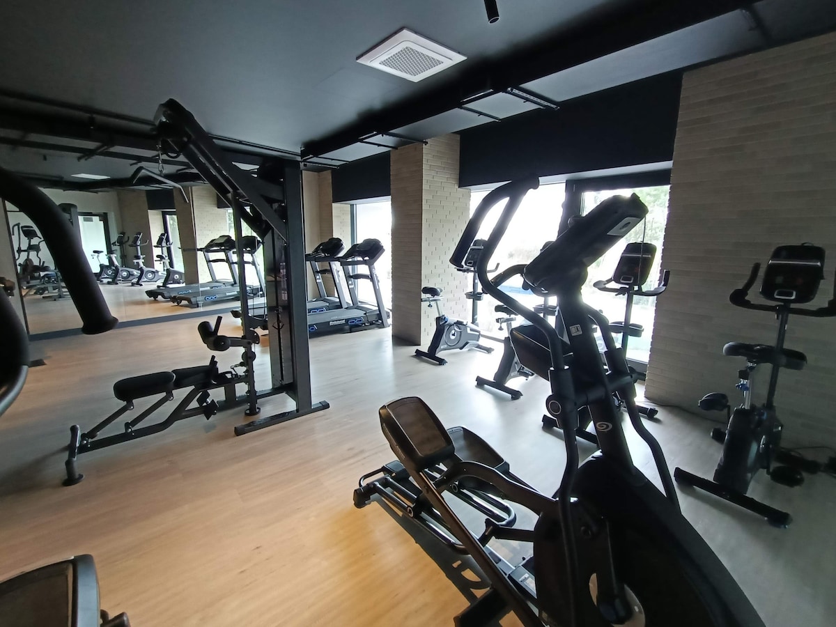 Ifulethi + indawo yokupaka, ijimu, ukusebenza kanye ne-sauna.