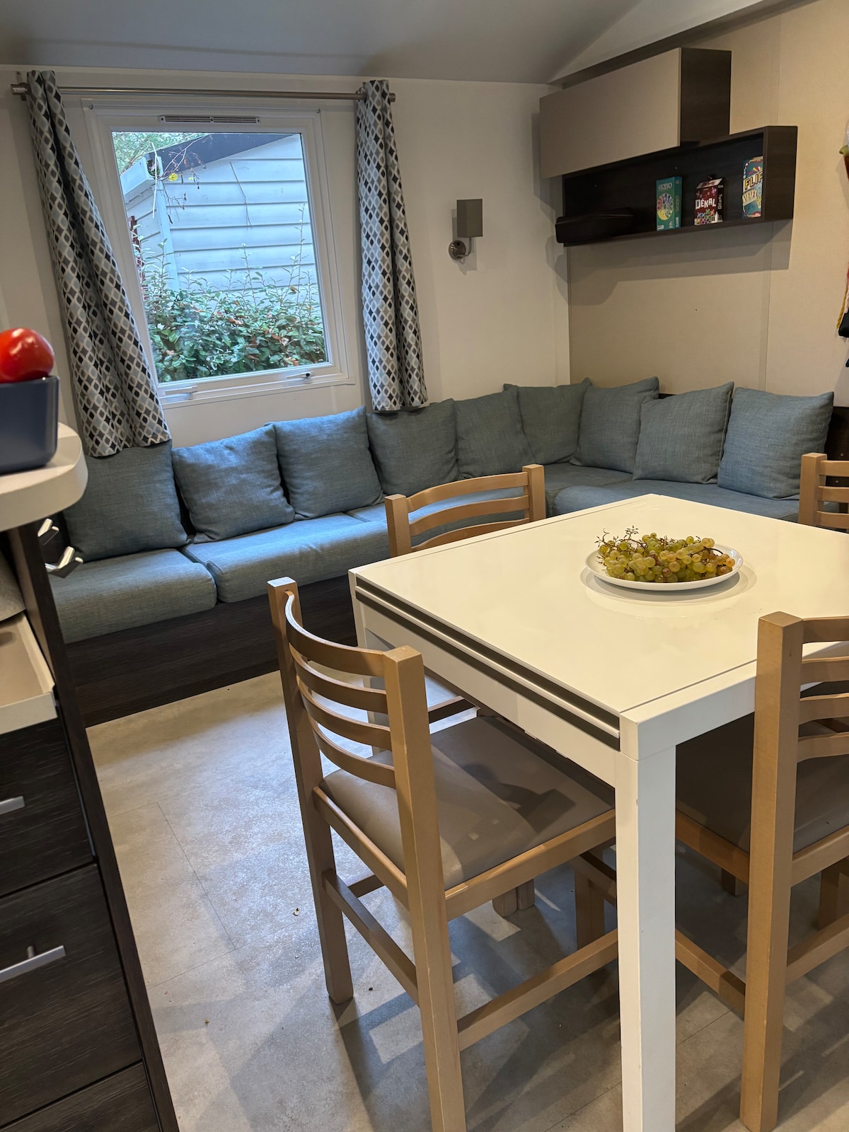 Le ndlu isendaweni ethule kakhulu. Esitezi esiphansi kukhona igumbi lokuphumula/ikhishi, igumbi le-shower nethoyilethi. Umbhede kasofa uyakwazi ukuguqulwa. Phezulu kunemibhede emincane engu-3 (singakwazi ukulungisa futhi senze imibhede emibili uma ufisa esikhundleni semibhede emincane engu-2). Ngaphandle uzothola ithala elinayo yonke imishini yangaphandle (itafula nezihlalo, umbhede welanga, i-barbecue). Imizuzu engu-5 ushayela uye ebhishi, enkabeni yedolobha, emakethe nasechwebeni elihle lokudoba lase-La Turballe.