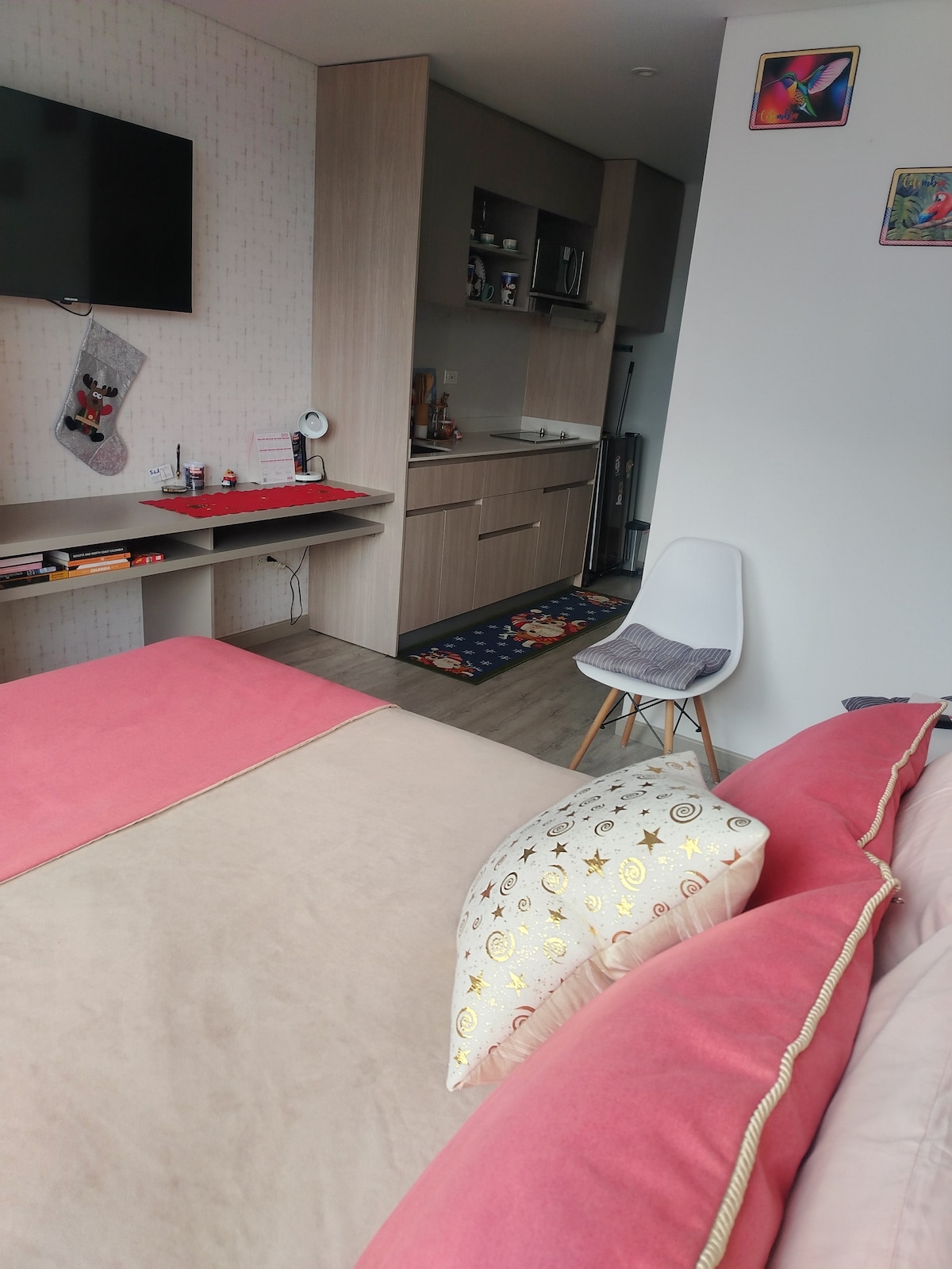 Siyakwamukela efulethini lethu elithokomele, esinakho konke okudingayo ukuze upheke, ufunde, usebenze futhi ujabulele ukuhlala kwakho e-Bogotá. (ayikho i-TV!!) U-EL Fiori usengxenyeni ethulile ye-La Candelaria, ingxenye engokomlando nethandwa kakhulu yedolobha. Izindawo ezikhangayo zezivakashi (i-Plaza Bolivar, i-Botero Museum, i-Gold Museum) ziqhele ngezinyawo. Jabulela ukubuka indawo enhle kakhulu edolobheni. Ukushona kwelanga kuzokwenza ukuhlala kwakho e-Bogotá kungalibaleki! P.S:Sinikeza indawo yokupaka yamahhala egalaji lamagceke ethu.