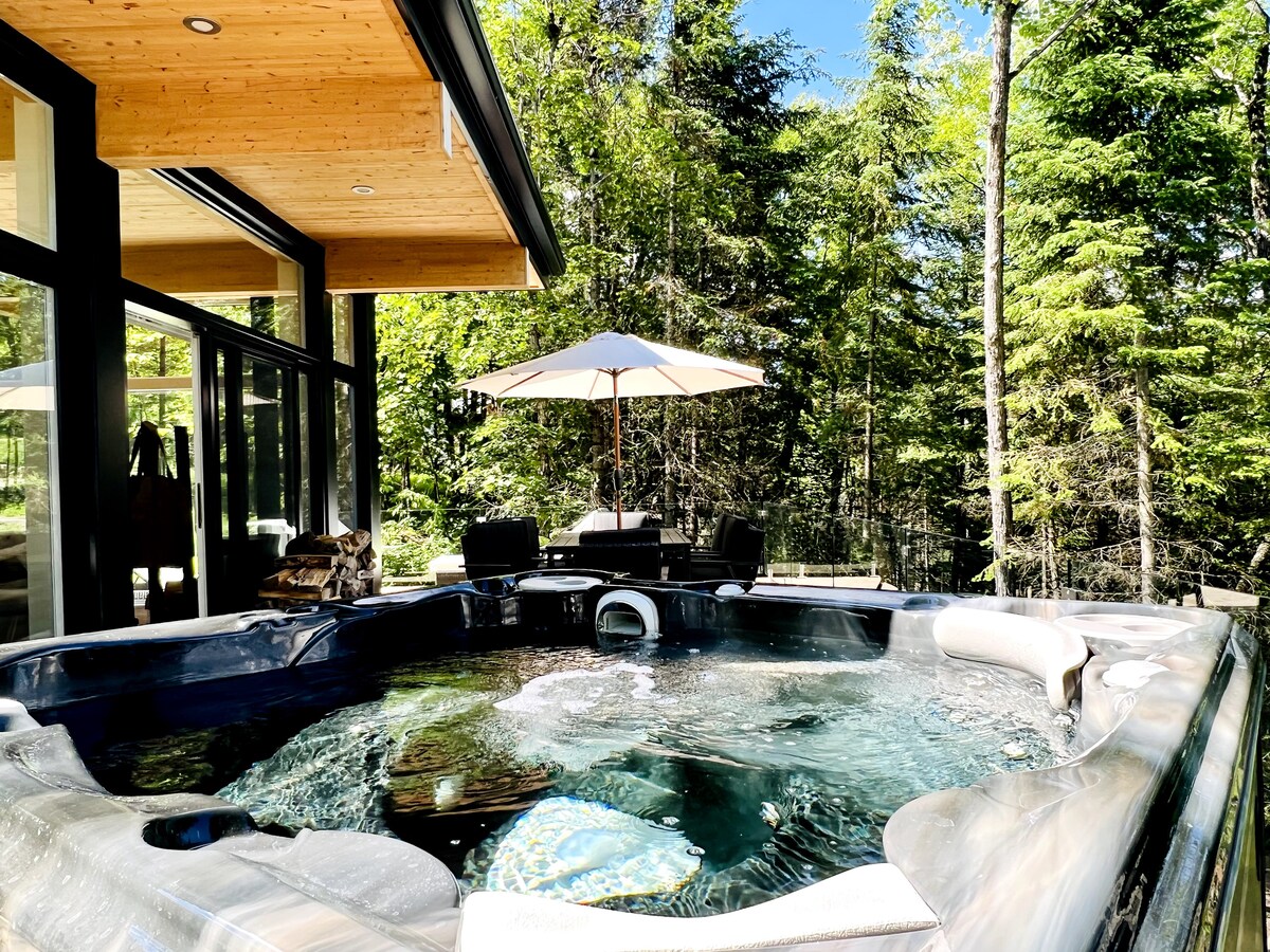 INDLU EYAKHIWE NGAMAPULANGWE ye-Libra | I-Idyllic Refuge in Nature - I-Spa ne-sauna eyomile enikeza indawo enhle kakhulu yokuphumula - I-fenestration enkulu enikeza ukukhanya okuyingqayizivele okugcwalisa indawo yangaphakathi - Izungezwe yizihlahla, isenkabeni yemvelo - Ama-patio amakhulu angu-2 anikeza izindawo eziningi zokungcebeleka - Indawo yomlilo yangaphakathi nengaphandle - Ngaphansi kwemizuzu engu-15 ukusuka e-Mont-Tremblant