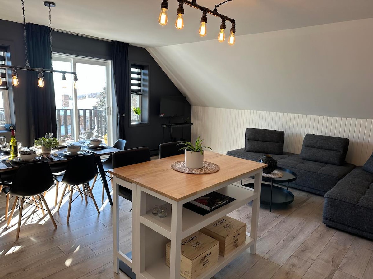 Le ndawo yokuhlala ebukekayo ikunikeza okokuzithokozisa okungenakuqhathaniswa okubekwe ezintabeni, nomsindo opholile womfula ngemuva. Kuzungezwe izinto eziluhlaza nezihlahla, uzothola indawo enokuthula nehlukile endaweni engcolile yase-Charlevoix. Jabulela imizila yokutshuza eqhweni eceleni kwendlu esemaphandleni ebusika nokuqwala izintaba ehlobo. Zivumelelwe ukuzola kwale ndawo emangalisayo.