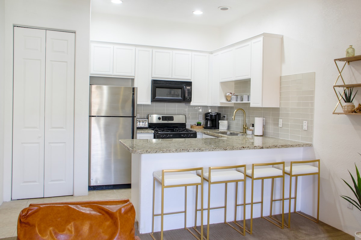 Ngiyakwamukela kule condo yangasese, esanda kulungiswa. Igumbi lokuphumula linezindawo eziningi zokuhlala ezithokomele, indawo yomlilo yegesi, nama-TV ahlakaniphile. Jabulela inkomishi yekhofi noma upheke isidlo sakho osithandayo ekhishini eligcwele. Leli kamelo lokulala linombhede we-California King omukelwe ngokunethezeka kwakho. Jabulela izindawo ezingaphandle kuvulande wakho wangasese, uphole kwenye yezindawo zokubhukuda eziningana eziyinkimbinkimbi, noma ubuke ukushona kwelanga kusuka ku-jacuzzi. Le ndlu iwuhambo olufushane oluya e-Old Town.