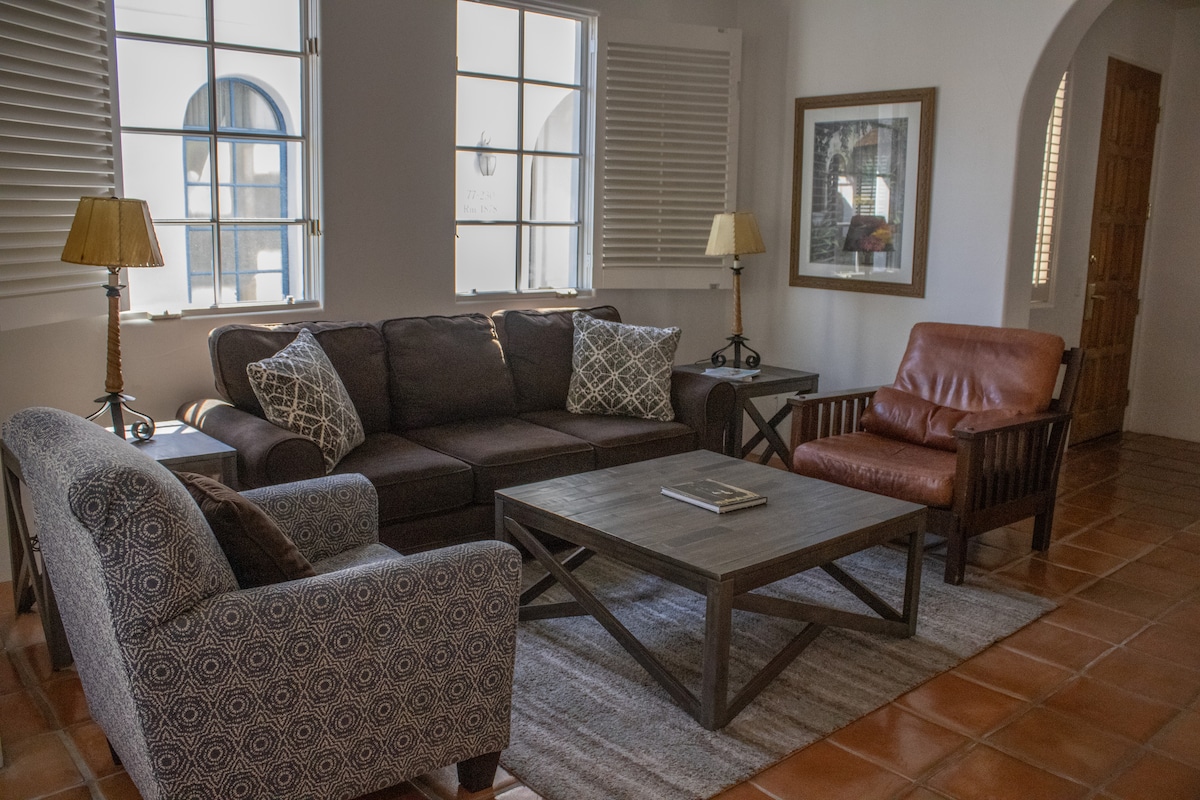 I-Casita de Oliva " yasungulwa ngo-1939 njengenye yezinhlaka ezingu-63 ezingavamile zase-Spain Colonial eLa Quinta Cove. Indawo yokubhukuda ebiyelwe yangasese enendawo emangalisayo yasentabeni Ingadi ebiyelwe Pet-Friendly I-Central Nest AC / Ukushisa I-Wifi ivikelekile ijubane eliphezulu I-3 Smart TV ENE-YOUTUBE Cable ne-Netflix I-terrace engemuva enendawo yokuhlala kanye ne-BBQ entsha ye-Char-Broil kanye nengadi enhle ye-cactus Ukuhamba ngezinyawo /izindlela zokuhamba ngebhayisikili eduze I-La Quinta Old Town yokuthenga nokudla ngaphakathi kokuhamba ngezinyawo Izinkantolo zethenisi zomphakathi zivaliwe