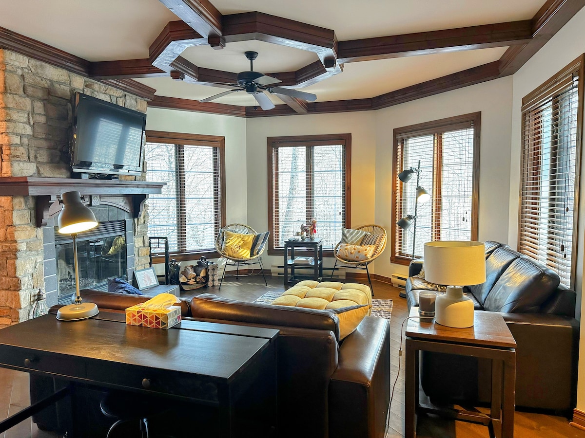 Leli studio elihle elingu-340sqm litholakala edolobhaneni elidala lase-Mont-Tremblant. …..Ukuvalwa kwephuli ngo-September 25 i-spa ngo-October 15 Konke okulungisiwe nokuhlotshisiwe, okunakho konke (ikhishi eligcwele) kulungele ukuvakasha kwezithandani! Izindawo zokudlela nezitolo eziningi kanye nebhishi lase-Lake Mercier liqhele ngemizuzu engaphansi kuka-10 ngezinyawo. I-Mont Tremblant suberbe iqhele ngemizuzu engu-8 ngemoto, kanye nendawo yokubhukuda ne-spa enhle kakhulu.