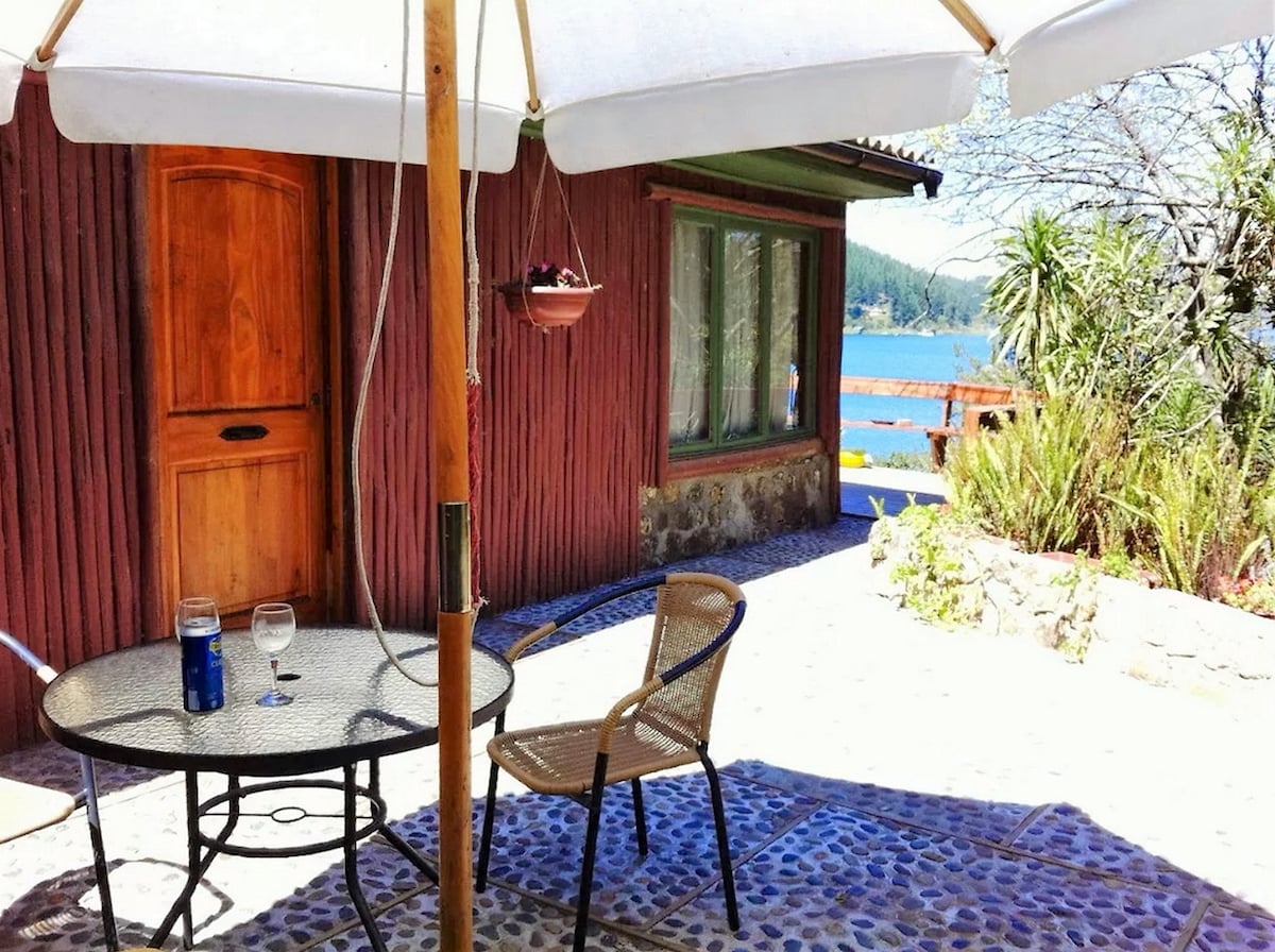 - Izindlu ezakhiwe ngamapulangwe eziqashisayo Lago Vichuquén