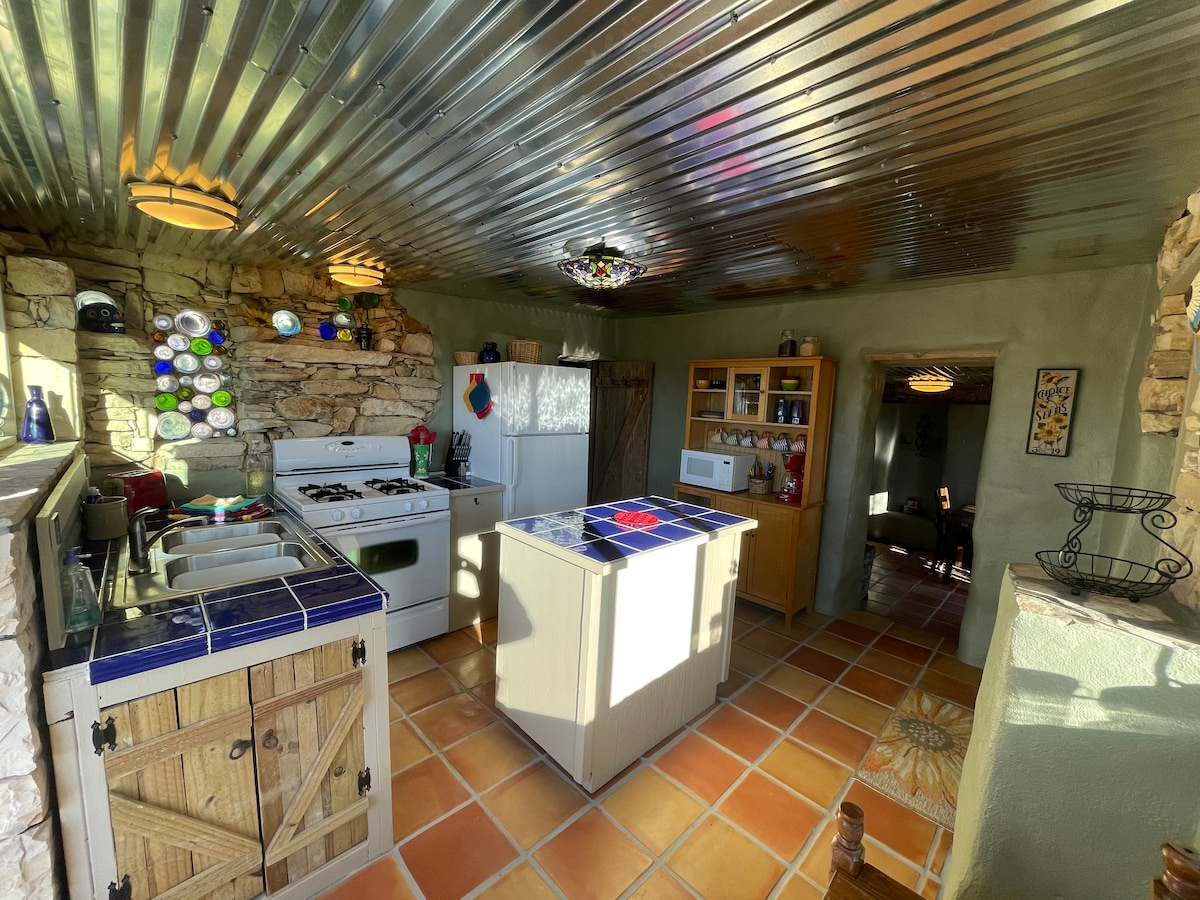 I-Casa Vista Grande ihlezi egqumeni enemibono ebabazekayo ye-Big Bend NP ne-Chisos Mtns. Kuqhele ngamakhilomitha angu-1.3 eningizimu ye-Terlingua emgwaqeni omuhle wokungcola…off Hwy 170. Kuqhele ngamakhilomitha angu-6 ukuya emnyango we-BBNP. Umfula, ukuhamba ngebhayisikili entabeni, ukuqwala izintaba, nezindawo eziseduze. Indlu yethu elungiswe kabusha engu-1200 sq. ft. adobe inekamelo elilodwa elinombhede omkhulu, umbhede we-queen Murphy endaweni yokuhlala evulekile, ophahleni oluvulekile, ikhishi eligcwele, igumbi lokugezela elikhulu elineshawa elinamathayili, umgodi womlilo, nama-parches amabili ahlanganisiwe.