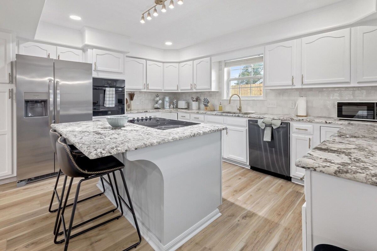 🌙 Siyakwamukela e-Midnight Moon, i-townhouse ephrayivethi enezitezi ezimbili ekhangayo enomhlobiso ojabulisayo namasevisi abuyekeziwe. Nakhu ozokuthanda: ✨I-Chic Décor 😴Kulala 8 🪁Igceke Langemuva Langasese 🔥Umgodi Womlilo Wangaphandle 🍽️Ikhishi Eligcwele 💻Indawo yokusebenzela 🧺Ilondolo Izinto Ongazenza e-Lake Charles, LA: 🍔Eduze Nezindawo Zokudlela 🌳Amapaki Aseduze 🎲Amakhasino Eduzane 🏌️Ukudlala igalofu 🌊I-Prien Lake Park 🚤Imidlalo Yasemanzini 🎭I-Lake Charles Civic Center 🍷I-Crying Eagle Brewing Company 🛍️I-Downtown Lake Charles ❌Awekho Amaphathi
