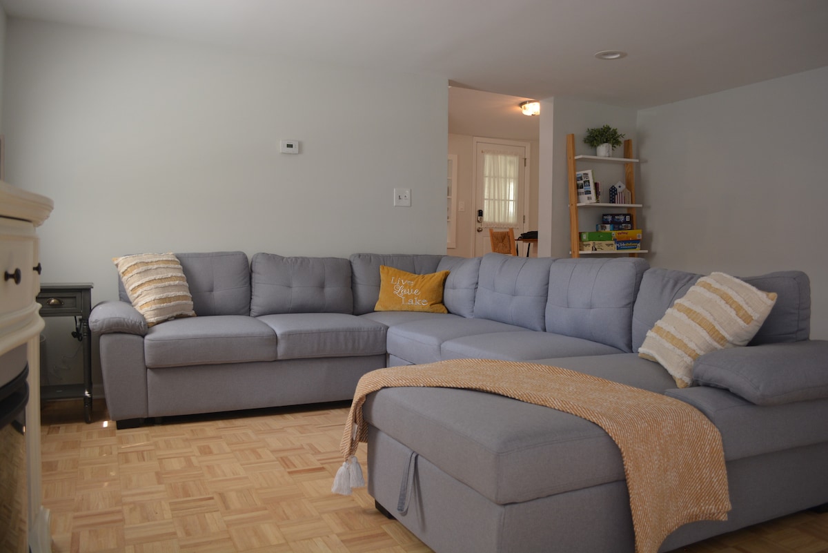 Woza uphumule, uchithe isikhathi futhi wenze izinkumbulo ekhaya lethu elilungiswe kahle, elibheke ichibi ogwini olusempumalanga yeLake Hopatcong. Itholakala kalula emizuzwini engu-10 ukusuka kuMzila 80 nemizuzu engu-30 kuphela ukusuka eNtabeni Creek. Inengaphakathi lesimanje, indawo yokuhlala evulekile, nedokodo lakho langasese. Jabulela ichibi ngamabhodi ethu amabili okugwedla, ama-kayak amabili nesikebhe. Sisekude kakhulu nakho konke okufanele sikwenze eLake Hopatcong, uzolangazelela ukwandisa ukuhlala kwakho echibini.