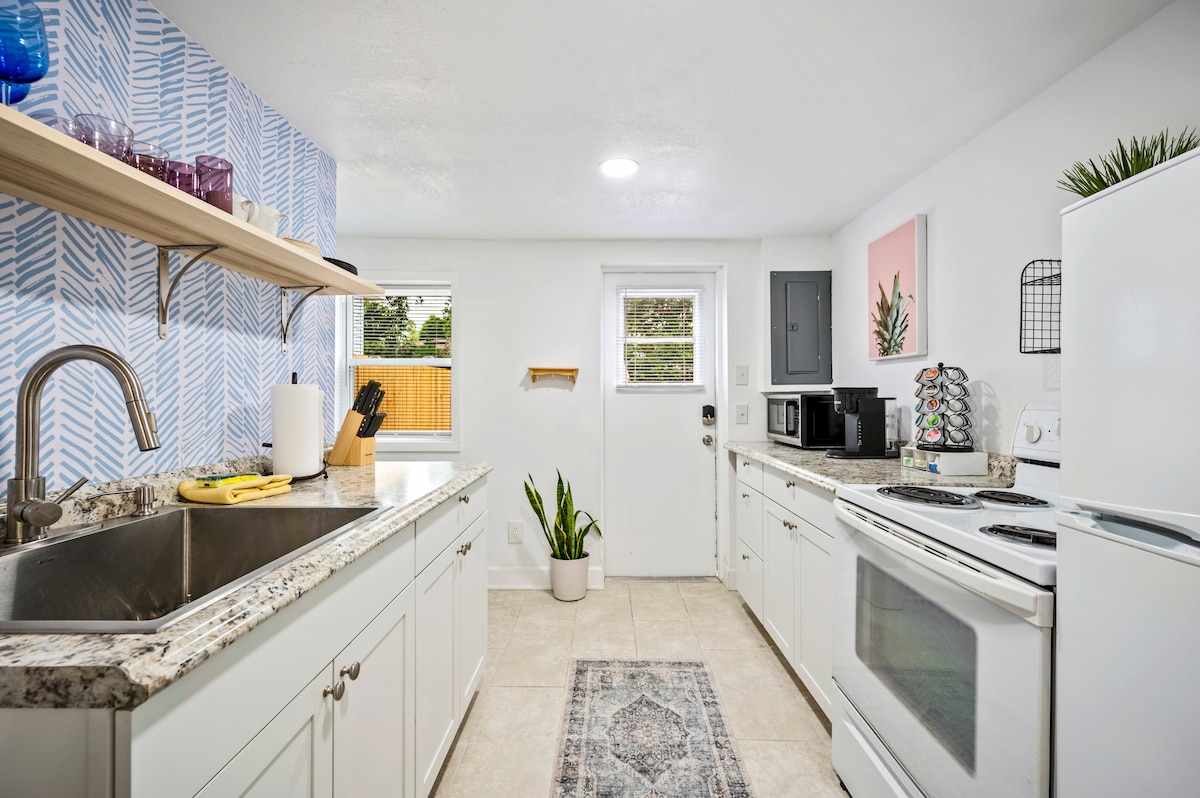 I-Little Blue House iyisitudiyo, i-guest house egcekeni lethu elingemuva. Indawo yokungena ehlukile ngaphesheya kwendlu eyinhloko. Leli kamelo elithokomele linemayikhrowevu, ifriji/ifriza encane, nomshini wokwenza ikhofi we-Kurig (ikhofi liyafakwa). Lisendaweni ekahle kakhulu e-East Lake Morton eyingqayizivele, eduze ne-Lake Morton, i-Lake Mirror, kanye nedolobha lase-Lakeland. Indawo ekahle kakhulu yokujabulela i-Lakeland.