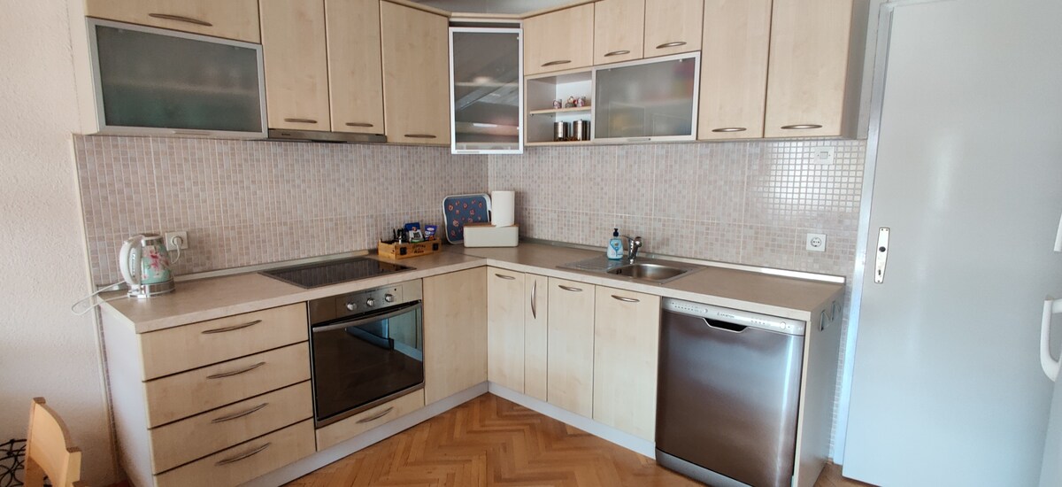 Siyakwamukela efulethini lethu elihle nelithokomele elinamakamelo angu-2 enkabeni ye-Ohrid! Ilungele imindeni, imibhangqwana, noma amaqembu amancane, le ndawo yokuvakasha ephakathi nendawo iyimizuzu engu-5 ukuya e-Lake Ohrid emangalisayo. Jabulela indawo yokuhlala ethokomele enezihlalo ezinhle, i-TV eyisicaba, nekhishi elinakho konke ukudla okuphekwe ekhaya. Nge-Wi-Fi enejubane eliphezulu, uzohlala uxhumekile kukho konke ukuvakasha kwakho. Hlola umlando ocebile, amathilomu endawo, nemigwaqo ebabazekayo uma usemnyango wakho.