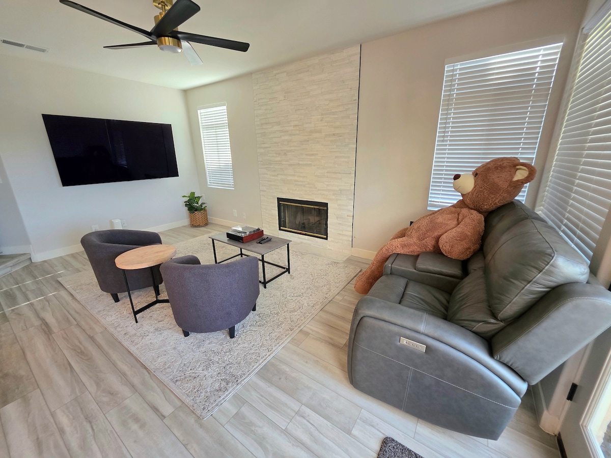 Ikhaya elilungiswe kahle! Izici zihlanganisa: -Ikhishi elinesitokwe esiphelele -I-Grill, umgodi womlilo, nokudlela ngaphandle -Igceke elikhulu elinendawo yokubhukuda (ALIFUDUNYEZIWE) -Ping pong, foosball, & air hockey -Washer & umshini wokomisa -Approx. 12 mins to Safari park -Imizuzu engu-30 ukuya e-Legoland, e-Seaworld, e-Zoo, nasemabhishi! -5 kuya emizuzwini engu-10 ukuya ezitolo zokudla, ezindaweni zokudlela, emapaki, nasemizileni yokuqwala izintaba -2 imiz ukusuka emgwaqeni omkhulu Indawo ekahle kakhulu ongayijabulela wena nomndeni wakho! AWEKHO AMAPHATHI AVUNYELWE Sicela ufunde imithetho yendlu ngaphambi kokubhukha. Siyabonga!