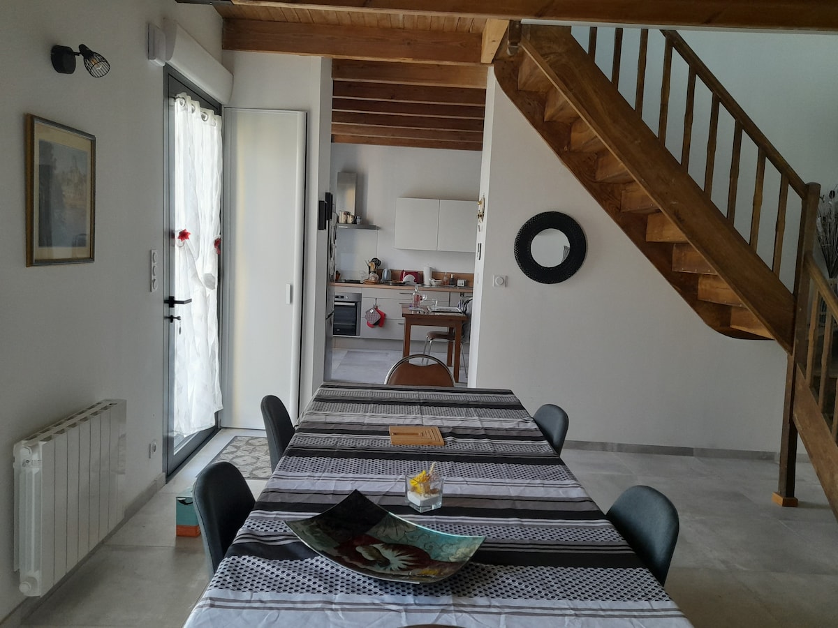 Indlu yami engu-60 m2 isendaweni yokuhlala eseduze kakhulu nenkaba yedolobha namachibi ezikhukhula (imizuzu engu-10 yokuhamba ngezinyawo),kodwa futhi netheku lokudoba kanye nesisekelo semikhumbi - imizuzu engu-15 yokuhamba ngezinyawo),noma amabhishi (imizuzu engu-5-10 ngemoto). Uzokwazisa izindawo zangaphakathi nobuhle bendawo endala elungisiwe kanye nethala lamapulangwe langaphandle. Izitolo ezincane eziseduze (ugwayi, umshini wokunyathelisa, indawo yokubhaka,isuphamakethe...) Ukupaka okulula emgwaqweni. Umgwaqo othule kakhulu.