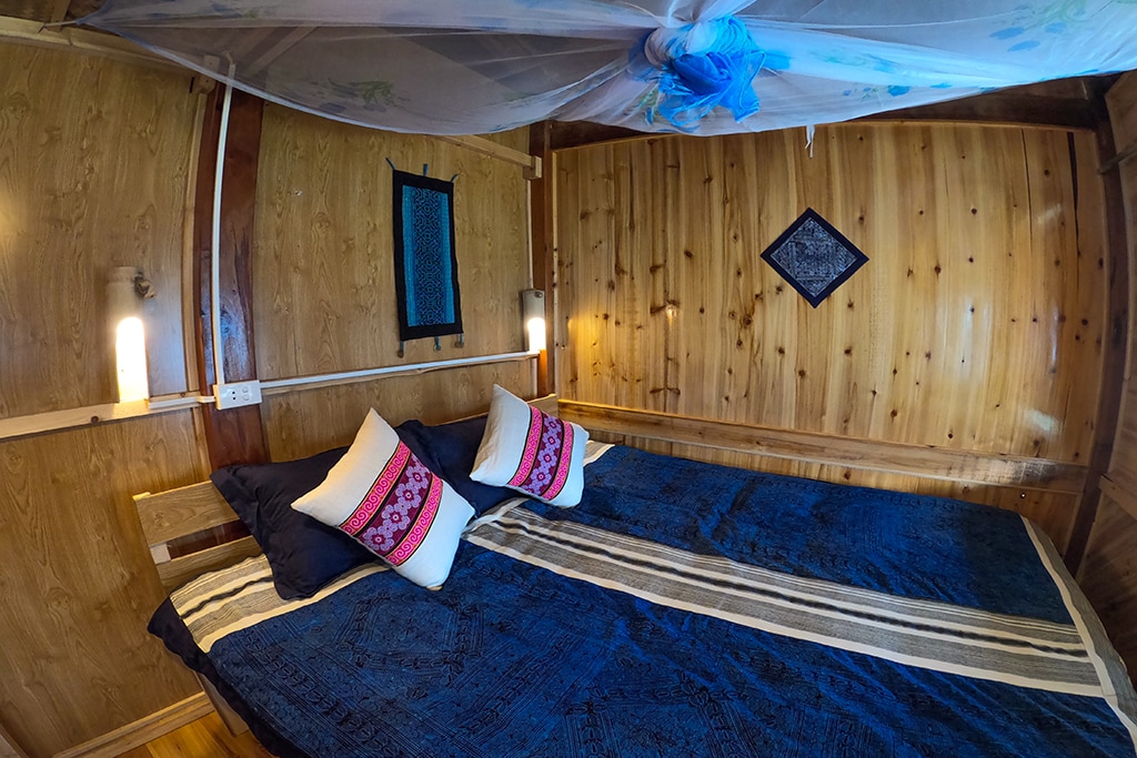 Our Homestay is the location outside the bustle of Sapa’s lively center, which is a small traditional village of Hmong People called Ta Van Mông. The house builds by wood, and the position is in the middle of the terraced rice fields. Here, you will admire the majestic beauty of Sapa, which you can't find in the town, such as vast rice paddies, mountain views; and the daily life of native people. A private room fully equipped with a double size bed (1m8x2m).