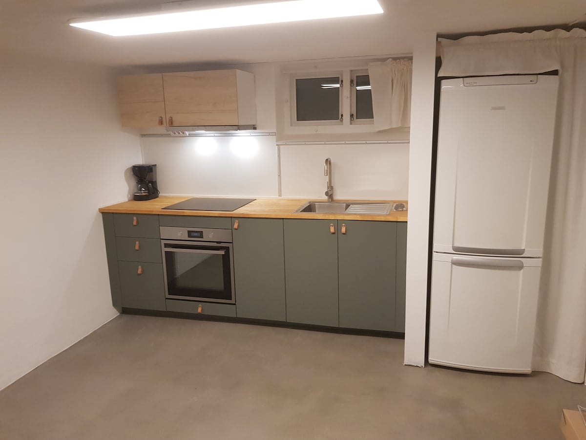 Ifulethi lezivakashi elinendawo yalo yokungena. Kusebenza kahle kubantu abadala abangu-2 Umbhede owodwa omkhulu (180 cm). Eduze nomgwaqo omkhulu. Indawo yokupaka iyatholakala eceleni kwefulethi. Ikhishi, indlu yokugezela enomshini wokomisa amathawula nendawo yokushisisa ngaphansi kwendlu. Isikhathi sasehlobo (May - Sep) sithola imvume yokungena kuvulande nendawo yokubhukuda. Ingadi yabelwana nayo nesakhiwo sokuhlala.