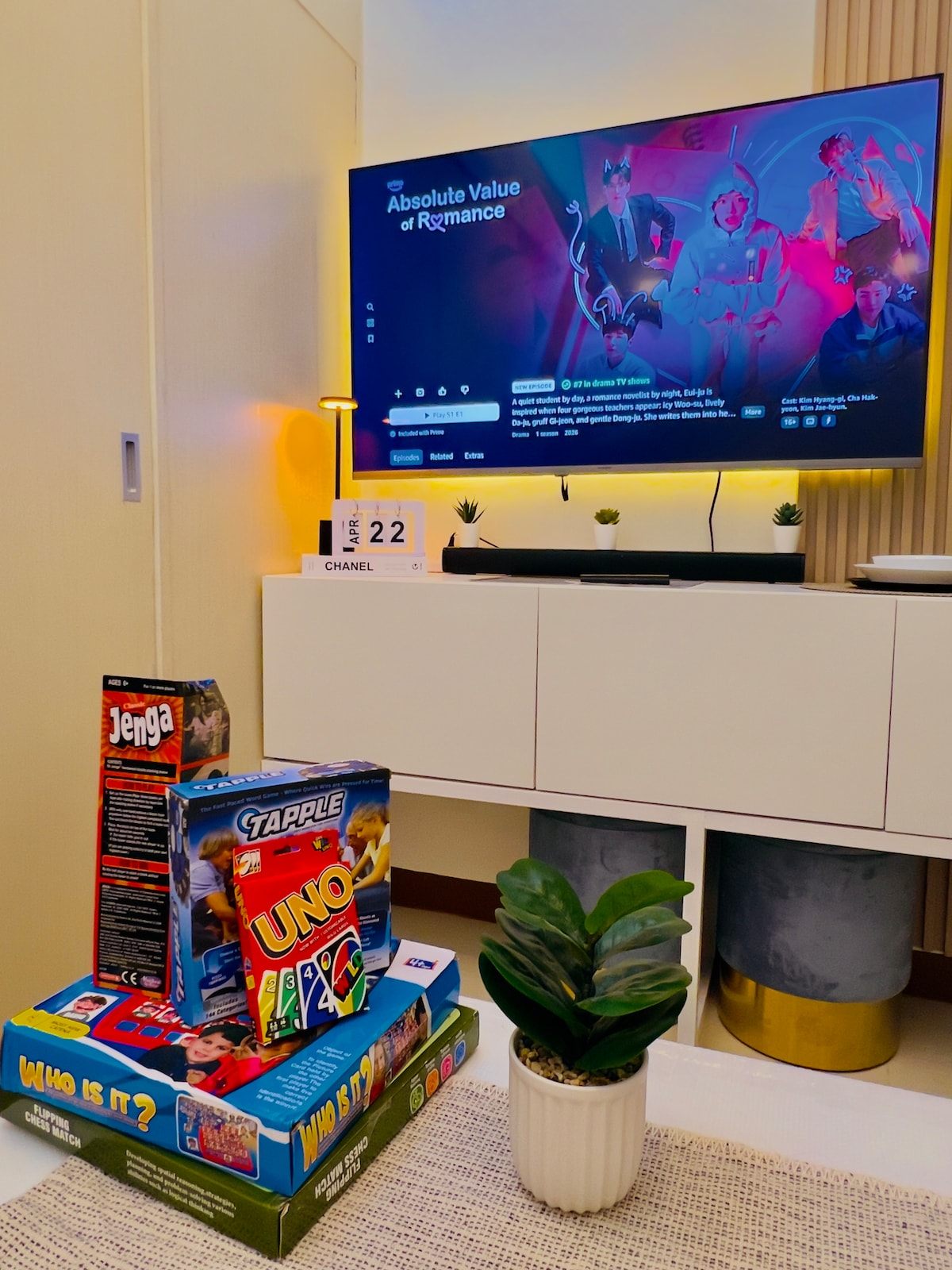Nethezeka futhi uphumule kule ndawo ezolile, enhle eduze kwezikhumulo zezindiza i-NAIA (cishe imizuzu engu-15-20 ngomgwaqo omkhulu) lapho ungaphumula khona isikhashana nomndeni nabangane bakho, ungene endaweni yokubhukuda noma udlale imidlalo yebhodi futhi ujabule! *Kungenwa ngo-2:00 p.m. futhi kuphunywe ngo-11:00 a.m.; uma ufisa ukungena ngaphambi kwesikhathi noma ukuphuma sekwephuzile, sicela usitshele kusenesikhathi ukuze silungise ishejuli.