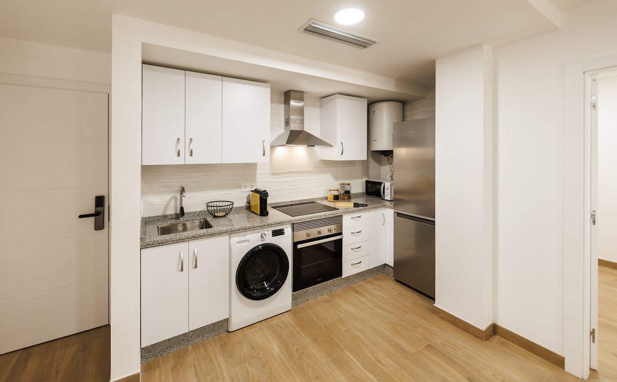 Jabulela ukuvakasha okungenasici kuleli fulethi lesimanje enkabeni ye-Badajoz, elungele imibhangqwana kodwa enomthamo wezivakashi ezingu-4. Isanda kulungiswa futhi inawo wonke amasevisi, inegumbi lokuphumula elithokomele, umbhede kasofa, ikhishi elinakho konke kanye nekamelo lokulala elinombhede olala abantu ababili. 📍 I-Alcazaba de Badajoz – imizuzu engu-10 uhamba ngezinyawo I-San Juan Bautista📍 Cathedral – imizuzu engu-3 uhamba ngezinyawo