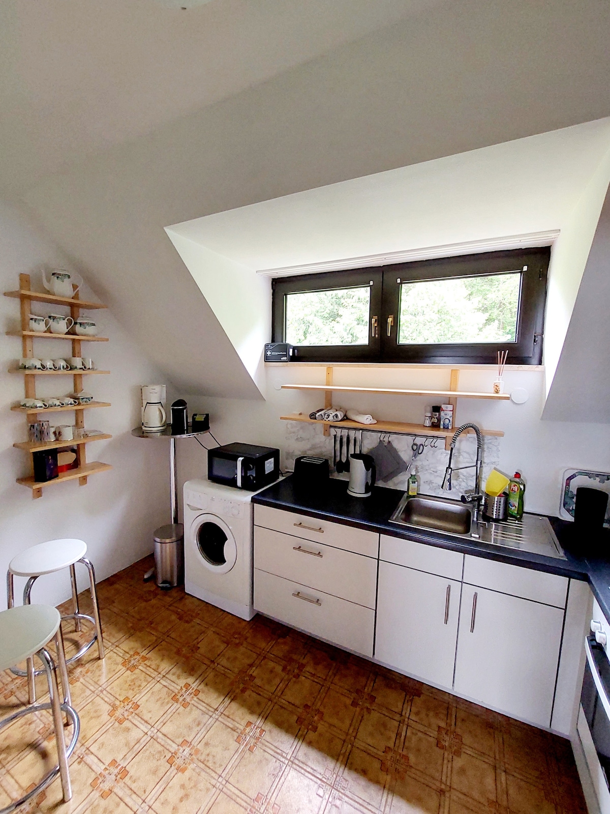 I-loft esitudiyo Le loft yesitayela, ethokomele esitudiyweni sika-Etienne isemaphethelweni ehlathini ngaphandle nje kwe-Bad Ischl esifundeni sase-Salzkammergut. Abathandi bobuciko nemvelo bathola okufanele imali yabo lapha. Xhumana nomdwebi u-Etienne, odweba esitezini sokuqala sesitudiyo. Ukubuka indawo enhle yezintaba kuyajabulisa. Ungajabulela ilanga lasekuseni ngesikhathi sebhulakufesi uvulekile kuvulande ohlangothini olusempumalanga futhi ube nombono omuhle wengadi enechibi nendawo yokosa inyama.