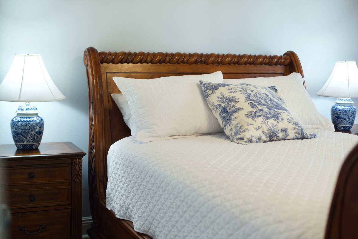 Siyakwamukela ku-Artsy Suite yethu ka-1930, indawo eyingqayizivele yokuphumula, ukunethezeka, ukunethezeka, nobuciko. Jabulela ubhavu wokuqala we-clawfoot, umatilasi oqokiwe we-Stern & Foster, nompheme ophrayivethi onengadi ethulile. Izungezwe imisebenzi yobuciko eyingqayizivele, leli suite elilungele izinja linegceke elibiyelwe ngokuphelele labangane bakho abanoboya. Indawo yokungena ephrayivethi, igumbi lelondolo, nokugxila ekunethezekeni nasekuphumuleni, Njengoba kubonakala ku-HGTV Hometown season 6 episode 2. Indawo yethu inikeza ukuhlala okungenakulibaleka ngempela.