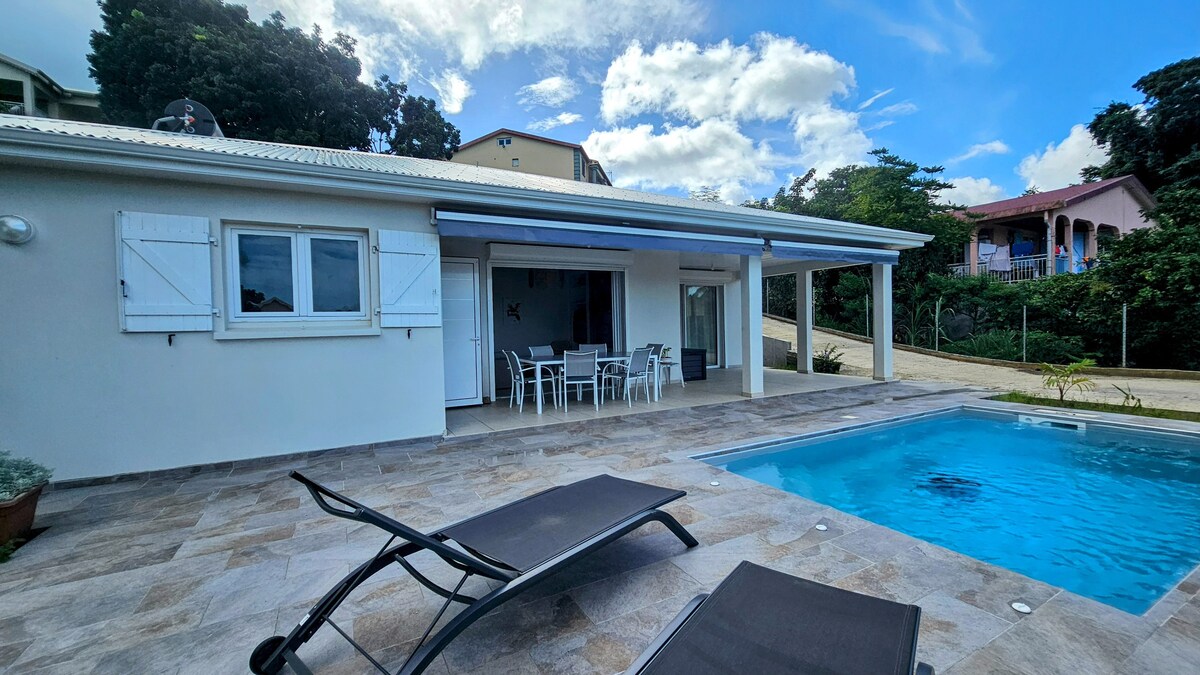 Jabulela nomndeni noma abangane le ndawo enhle yokuhlala enikeza izikhathi ezimnandi ngombono. Eduze nawo wonke amasevisi, imizuzu engu-3 ukusuka esikhungweni sokuthenga esikhulu kunazo zonke esiqhingini, ngaphansi kwemizuzu engu-10 ukusuka esikhumulweni sezindiza kanye nenhloko-dolobha i-Fort de France, ngaphansi kwemizuzu engu-20 ukusuka emabhishi. Amakamelo okulala angu-2 anomoya oshisayo ahlanganisa ikamelo elilodwa elinombhede owodwa, omunye onombhede owodwa nombhede owodwa, ikhishi elinakho konke, igumbi lokugezela elingu-1, igumbi lokuhlala elivulekile negumbi lokudlela, i-veranda eyodwa yokudla kwakho kwangaphandle.