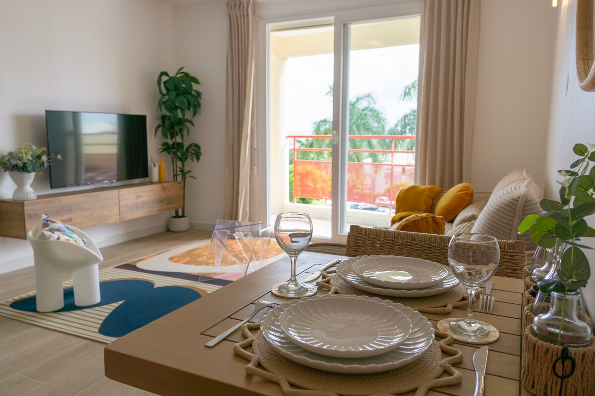 Ngena ekhaya elikhanyayo futhi ujabulele ukubukeka okuhle kwetheku lase-Fort-de-France! Leli fulethi liqhele ngemizuzu engu-5 ukusuka emgwaqweni omkhulu wesiqhingi, lizoba indawo yakho ekahle yokuhlala okusebenzayo noma kokuzilibazisa noma inhlanganisela yakho kokubili. Idizayinwe kucatshangelwa umsebenzi osekhaya, ideski elizinikele ne-inthanethi enejubane eliphezulu kuzokuvumela ukuba usebenze kahle. Ukuze ulale kahle, ikamelo lokulala elithokomele eline-air-conditioning lizokwamukela ubusuku...noma emini.