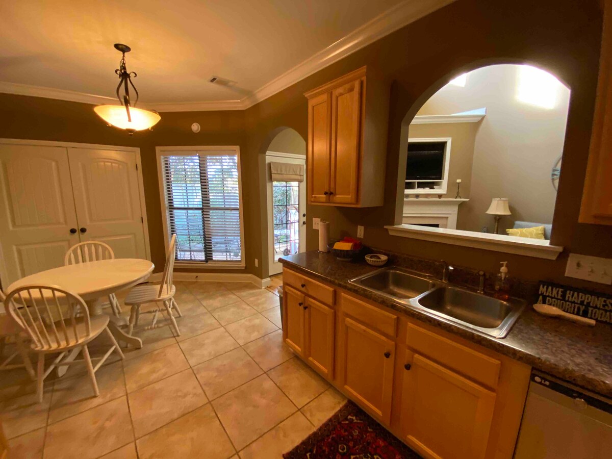 I-townhome ethokomele enezitezi ezimbili etholakala emakhilomitha angu-1 ukusuka e-Toomer 's Corner naseduze nesitoko se-Tiger Transit. Itholakala ekupheleni kwe-cul-de-sac emgwaqweni othulile. Sinegceke elikhulu elingemuva elibiyelwe nendawo yokuzijabulisa yangaphandle, kanye nendawo yomlilo yegesi ethokomele yobusuku obumnandi. Ngemva kokuba usuqedile ukuhlola lokho okunikezwa yi-Auburn, phumula endaweni yethu. Izilwane ezifuywayo zamukelekile! Sinikeza izikhwama zokwenqaba ukuze sizithathe ngemva kwezilwane zakho ezifuywayo, nezitsha zamanzi/zokudla. Kunemali engu- $ 50 dollar yesilwane esifuywayo.
