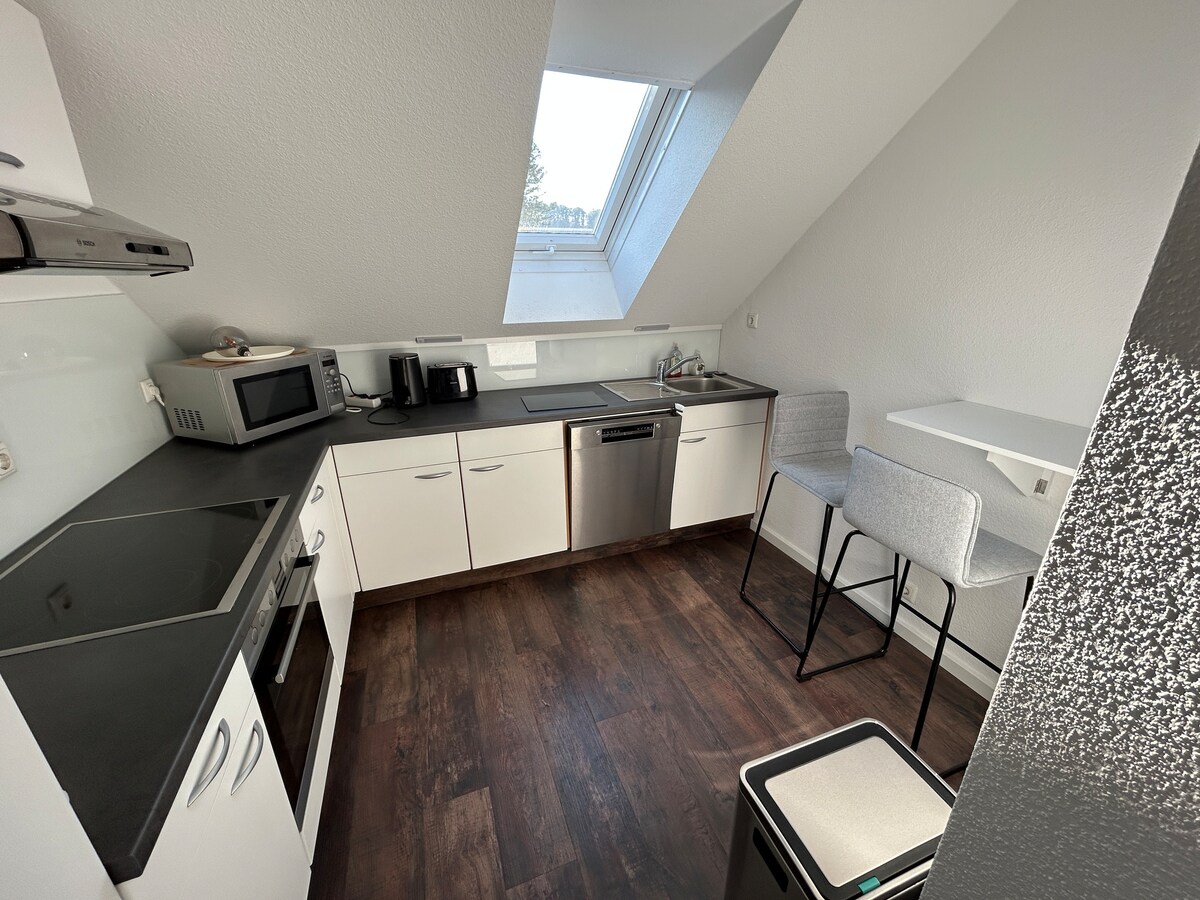 Siyakwamukela emzini wethu wesimanje ngokuqondile ehlathini! Indawo yokuhlala ingahlalisa abantu abangu-2-3 futhi inekhishi elincane kanye negumbi lokugezela lesimanje, elivulekile. Ifulethi litholakala kalula phakathi kwe-Düsseldorf ne-Cologne futhi kunemizila emihle kakhulu yokuqwala izintaba ehlathini eliseduze. Jabulela inhlanganisela ephelele yemvelo nedolobha futhi ubhukhe indlu yethu enendawo yokungena eyimfihlo, indawo yokupaka kanye nokuzingenela okunethezekile kwamahora angu-24 manje.