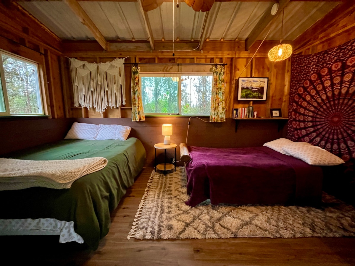 IHLEZI🌴 ngasese phakathi kwezintende zesundu namaqabunga asezindaweni ezishisayo, ikamelo lethu elinokuthula lihlala endaweni engcwele yehlathi lemvula lomdabu lase-Ohi'a HLOLA amabhishi anesihlabathi🌋 esimnyama, amahlathi asendle, amachibi ashisayo entabamlilo ne-Hawai 'i Volcanoes National Park I-ZEN 🎋 nsuku zonke nemvelo: yidla futhi uphumule endaweni yokuphumula yomgodi womlilo phakathi kwezindawo nemisindo yehlathi ku-lanai ehlungiwe VUSELELA💦 ihlathi lemvula elihlanzekile linikeza ibhalansi ehambisanayo yelanga nemvula enesilinganiso sokushisa sokuphakama kwasogwini esipholile esingu-83H-65L