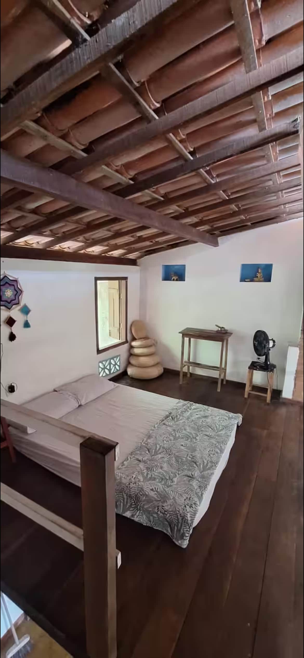 Ideal para uma estadia de uma semana ou mais pois o desconto é vantajoso ( 50% para 1 mês). Você despertará ouvindo o canto dos pássaros e repousará em varanda com rede desfrutando a vista para o quintal de 2000m com árvores frutíferas. Uma escrivaninha auxiliar pode ser adicionada. Ventilador de mesa e de parede. Móveis exclusivos feitos pelo proprietário. O casal anfitrião mora em uma casinha nos fundos da propriedade . Acolhemos e respeitamos todas as raças, religiões e gêneros.