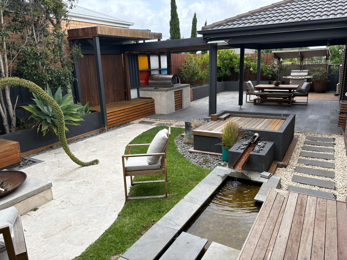 Akungabazeki ukuthi lena yindawo ENGCONO KAKHULU ongayithemba lapho uvakashela i-Geelong West! Itholakala emgwaqweni othulile ohlala abantu kodwa uhamba ngezinyawo imizuzu engu-2 ukusuka endaweni ephithizelayo yase-Pakington Street enezitolo zokudlela eziningi, izindawo zokudlela nezitolo zokudlela. Uhambo olufushane lwemizuzu engu-20 luzokuyisa e-GMHBA Stadium, 10-15 esiteshini, enkabeni yedolobha lase-Geelong nase-Waterfront ukuze ujabulele izinkantini ezihlukahlukene, izindawo zomculo bukhoma nokuphila kwasebusuku okumnandi. I-Spirit of Tasmania Ferry iwuhambo lwemizuzu eyi-10 kuphela.