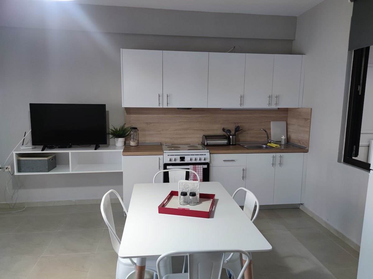 Uyemukelwa efulethini lethu elithokomele e-Orestiada! Ungajabulela uvulande ovulekile negumbi elithokomele lokuhlala ekhishini. Ilungele abantu abangaba ngu-4.