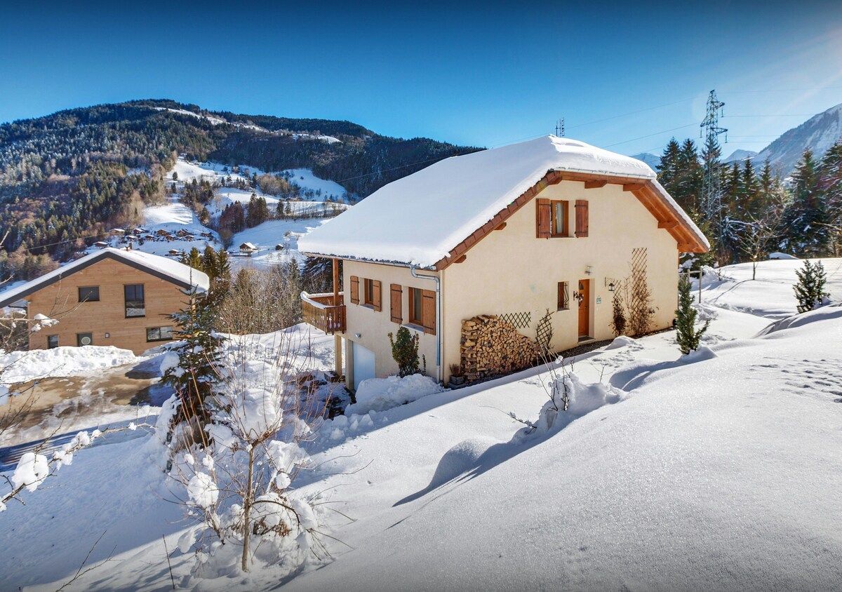 Cozy and authentic chalet with a south-facing terrace and stunning views of the Aravis mountains. Peaceful, no overlooking neighbors. Just 5 min from Croix-Fry ski resort, 15 min from shops (La Clusaz, Thônes), and 40 min from Annecy or Megève. Perfect year-round retreat !