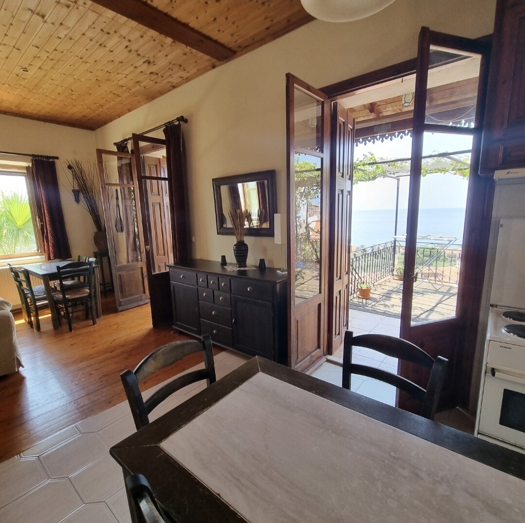 The apartment, which is about 45km from Mytilene, occupies 70 sq. m. It has two bedrooms, bathroom with bathtub, dining room - kitchen and two large balconies at the front, overlooking the sea, and at the back of the property. There is also the possibility of using central washing machines and barbeques. The sea is only 70m away. and at a distance of 100m. There is a mini market. In the area you will find a pharmacy, ATM, cafes, taverns and beach bars to enjoy your swim!