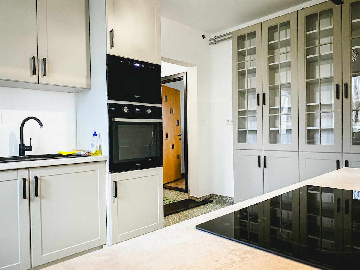 Ifulethi elinakho konke, lesimanje eliqinisekisiwe ukuthi lizobonakala bukhoma. Ifulethi lisesitezi sesine, kukhona ikheshi. Nginikeza indawo yokupaka yamahhala uma ngicelwa. OKUBALULEKILE: Sicela ubonise lokhu ngesikhathi sokubhukha, njengoba isithiyo singavulwa nge-remote control! I-Wifi, i-Netflix iyatholakala endlini. Kukhona nendawo yokudlela, isitolo esisebenziseka kalula, ikhemisi epaki lamafulethi. Umshini wokomisa izinwele, amathawula, insipho yomzimba, amalineni, ikhofi, netiye, ungahambi nalokhu!
