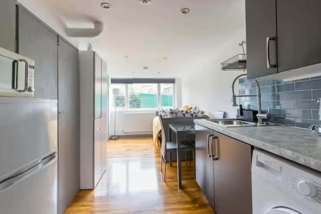 Welcome to this charming studio flat located in the highly desirable area of Didsbury, UK. Situated just a stone's throw away from Didsbury village, residents can enjoy a plethora of amenities including shops, cafés, and restaurants. The studio boasts a comfortable double bed, and is equipped with a kitchen, a full size wardrobe, washing machine & dryer. It’s a 7-minute walk to the train station, with direct routes to the city centre (about 15”) and the airport (about 10”).