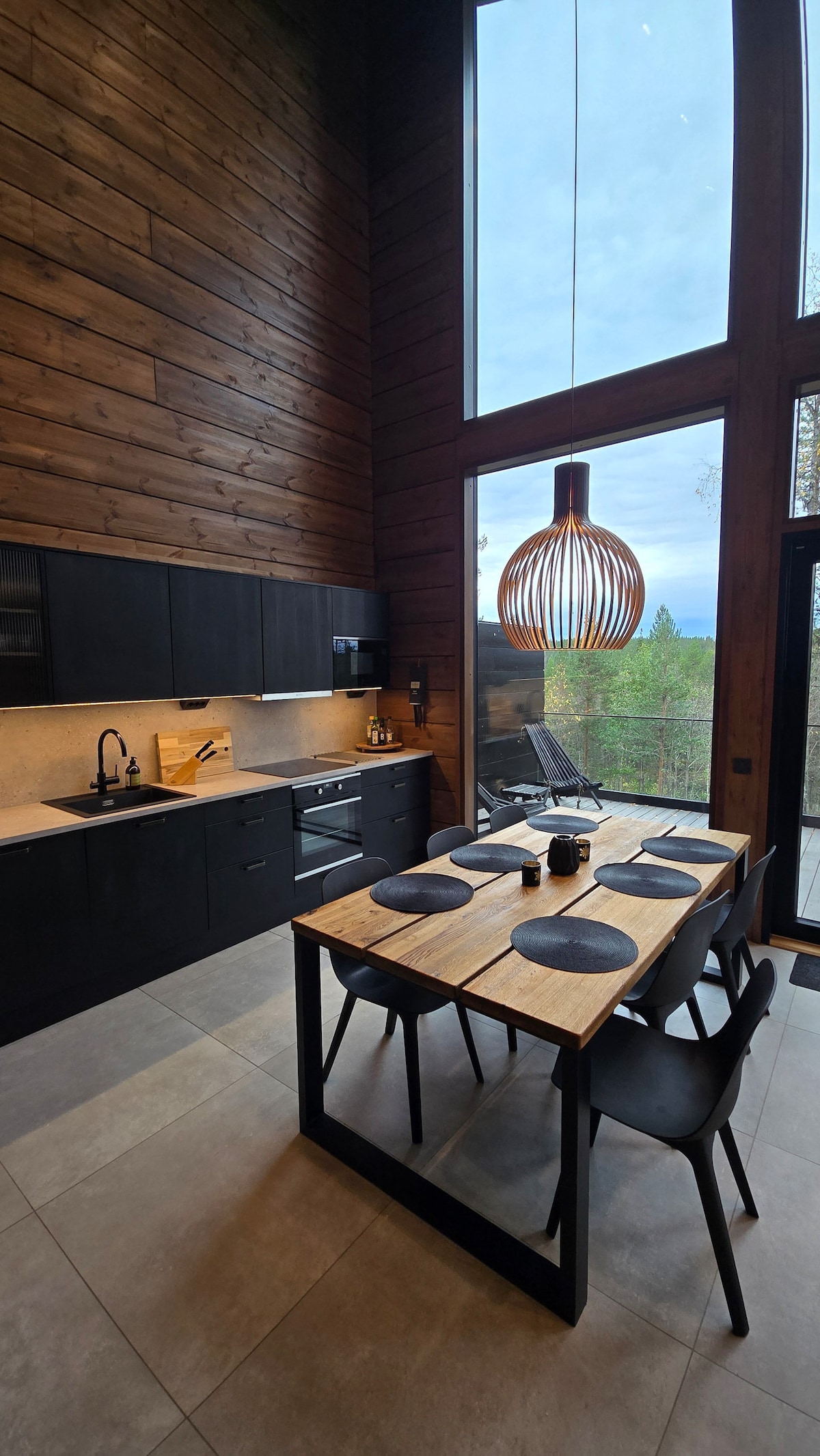 Indlwana ethokomele esanda kuvulwa ikumema ukuba ujabulele ukuthula okumangalisayo kwe-Lapland, lapho kuhlangana khona ukuthula kwemvelo yase-Arctic nemisebenzi ehlukahlukene. Imizila yokushushuluza eqhweni, imithambeka, nemizila yokuhamba eqhweni iqhele ngemizuzu embalwa futhi ibhasi lokushushuluza eqhweni liqhele ngamamitha angaba ngu-300. Indlwana inomoya ofudumele – izindawo zamapulangwe, indawo yokubasa umlilo, kanye ne-sauna kwakha indawo ekahle kakhulu yokungcebeleka. Siyakwamukela ku-Lapland vibe yangempela - indawo lapho isikhathi sincipha khona futhi imvelo isondela.