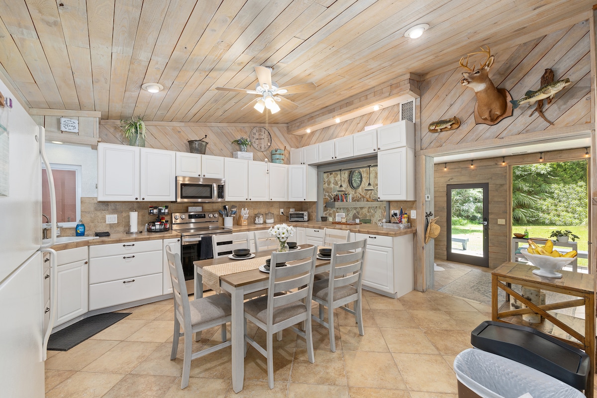 Siyakwamukela edolobheni Elinokuthula lase-Dunnellon, Ikhaya lethu Lase-Tropic ligcwele wonke amasevisi owadingayo ukuze uphumule, uzijabulise futhi uhambe edolobheni Igumbi lemidlalo elihlanganisa itafula le-pool, i-Foosball, i-Basketball + i-TV I-Patio Emboziwe + Indawo Yokudlala + i-BBQ Grill Amakhilomitha angu-3 ukusuka edolobheni/emithonjeni uma usukulungele ukuhlola Amaqanda/Ikhofi njalo endlini, jabulela ekuseni ngemva kokufika kwakho! Uthango OLUSHA SHA lusanda kufakwa Thatha udoti uye emathini ngakwesokudla sendlu ngemva kokuvula uthango